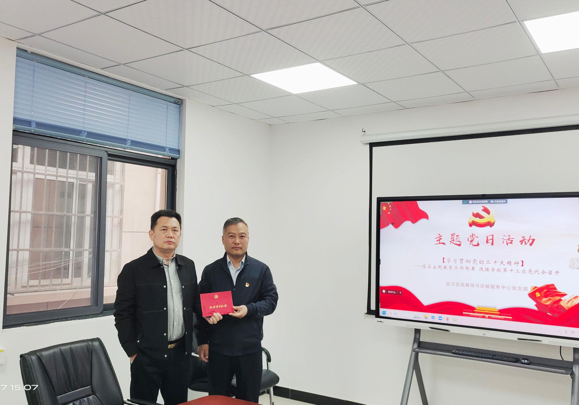 实习实践基地与运输服务中心党支部于4月27日在支部党员活动室开展了主题为“落实主题教育工作部署 迎接学校第十三次党代会召开”的4月份主题党日活动,支部全体在校党员和入党积极分子参加,线上线下同步进行。会议由中心党支部书记韩向方主持。