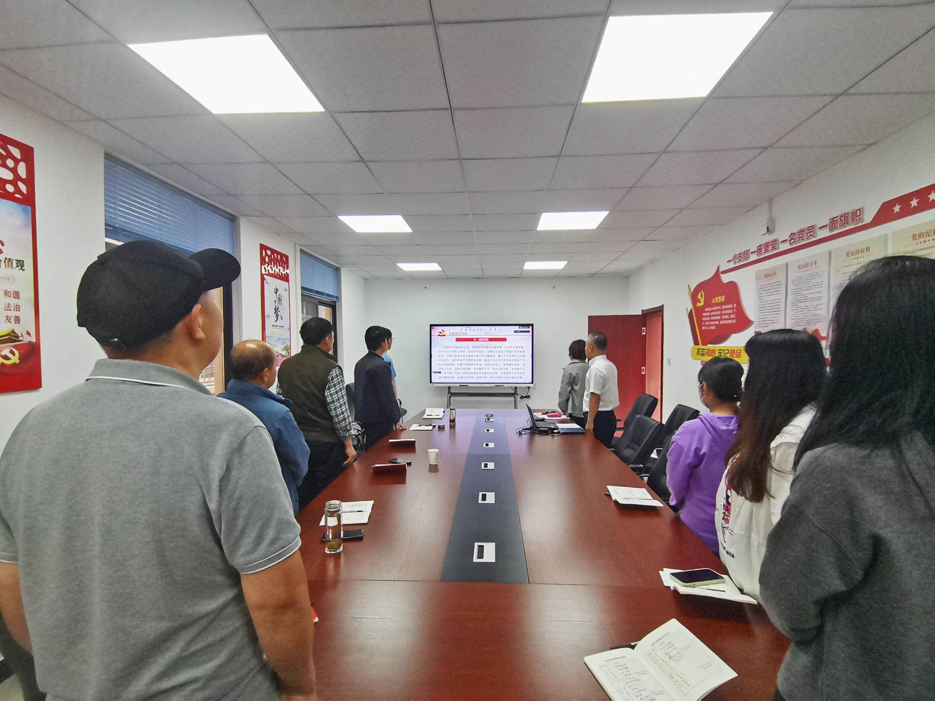 首先,全体起立,奏唱国歌。接着,面对党旗,由王福同志领誓重温了入党誓词。在组织委员刘筱慧同志的领读下,党员同志集体诵读了《党章》选段。完成系列规定动作后,活动进入专题学习环节。
