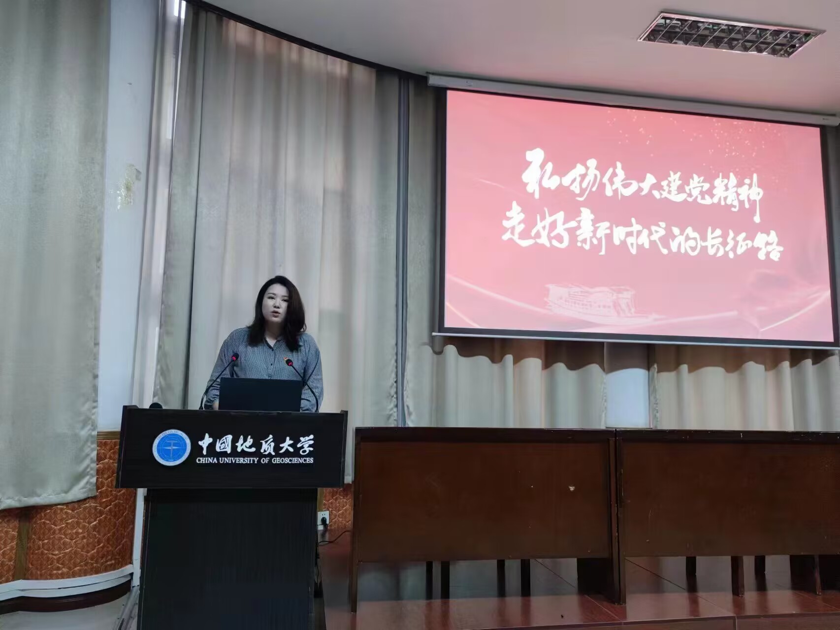 根据后勤党委开展主题教育实施方案的总体要求,为将主题教育学习学深学实,入脑入心,弘扬地大人“艰苦朴素 求真务实”的精神品质,展现后勤人顽强拼搏、昂扬向上的精神风貌。5月26日下午,劳动服务中心党支部联合学生住宿服务中心党支部以及艺术传媒学院和资源学院结对领航学生党支部开展主题教育活动。本次活动邀请了我校马克思主义学院美丽中国讲师团成员李蔚然副教授,以《弘扬伟大建党精神,践行后勤使命担当》为主题,为大家进行二十大精神宣讲。党课由劳动服务中心党支部书记杨扬主持。