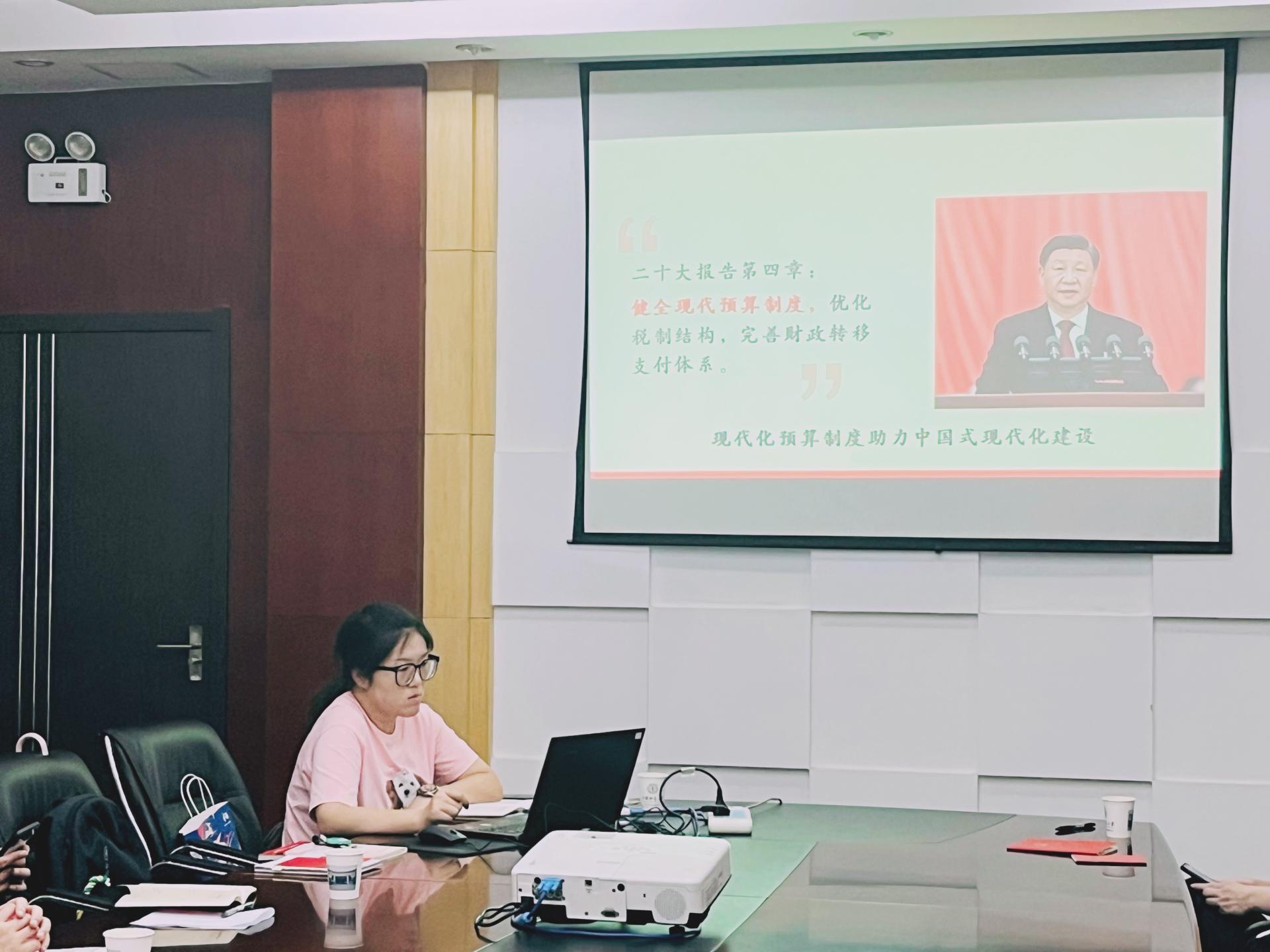 在“我讲二十大”系列课程中,党支部书记董海伦“以预算管理现代化助推中国式现代化建设”为题,就二十大报告中“健全现代预算制度”进行学习分享。她简要介绍了十八大以来我国“预算”制度的变革,从三个方面阐述了健全现代预算制度对推进中国式现代化的意义,从四个方面阐明健全现代预算制度的任务,最后介绍了预算管理一体化相关内容,并结合后勤工作提出有关要求。