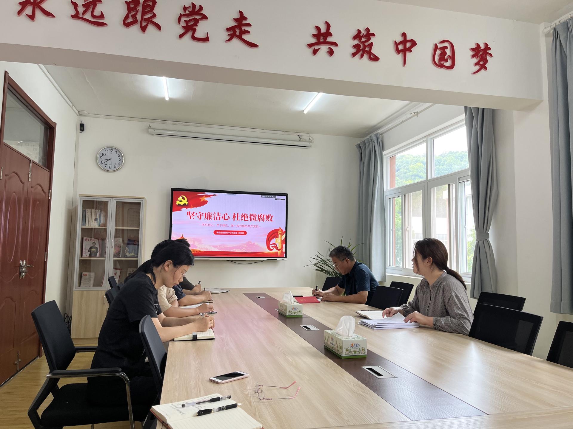 为进一步落实全面从严治党,扎实开展党风廉政教育月活动,不断筑牢党员干部思想防线。7月17日上午,学生住宿服务中心党支部在中心二楼会议室开展党风廉政教育专题学习,全体党员、入党积极分子及中心班长及以上人员参会,会议采用线上线下同时进行。