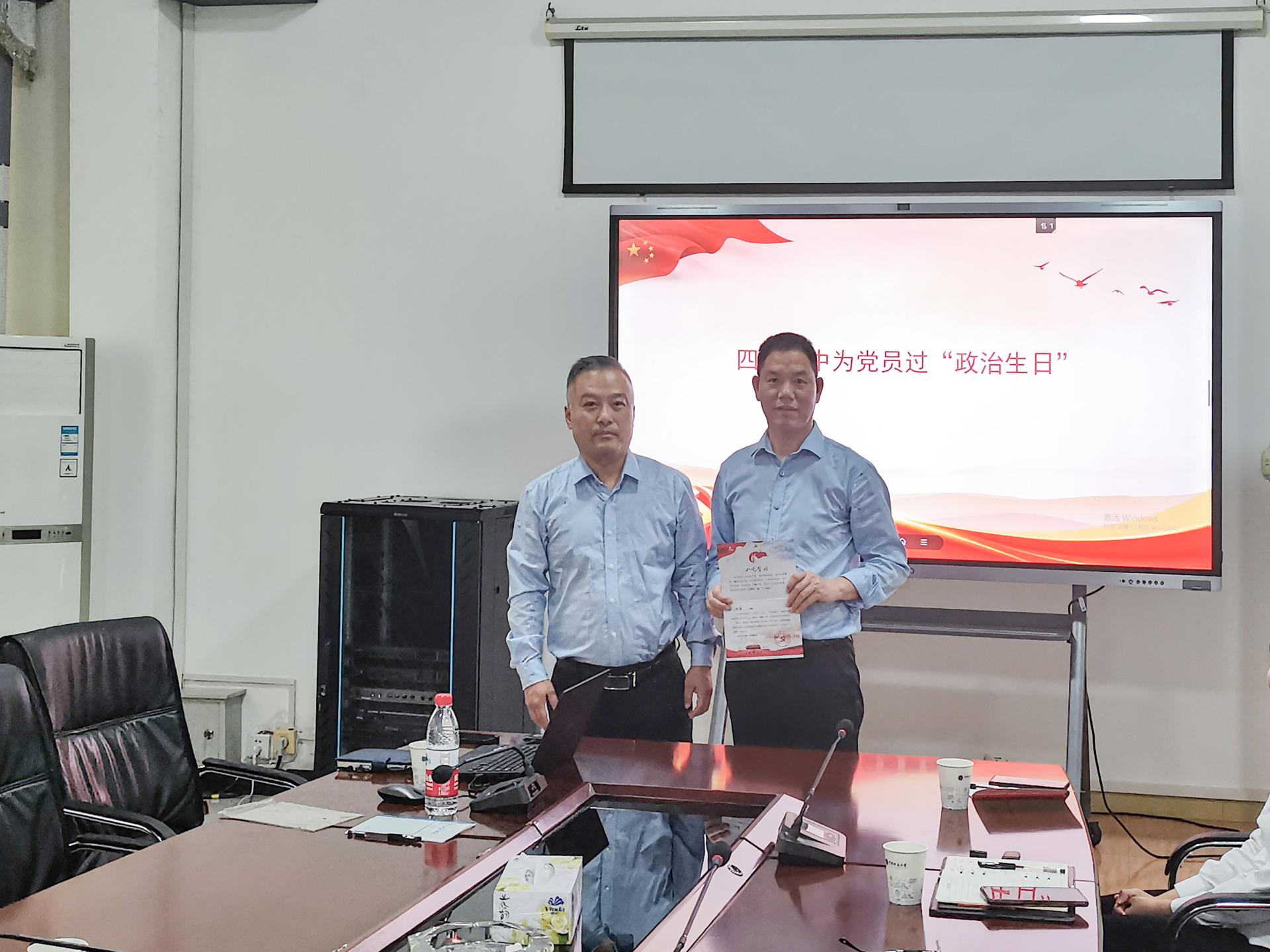 岁月流转,信仰弥坚。在为正式党员过“政治生日”环节,韩书记代表党支部向陈艾甫同志颁发了”政治生日”纪念卡,送上政治生日的祝福。陈艾甫同志深情回顾了自己的入党历程,分享了在党的收获与成长,并表示在今后的工作生活中,将时刻牢记共产党员的责任与义务,永葆对党忠诚的政治本色,立足本职岗位为人民服务,发挥好共产党员的先锋模范作用。