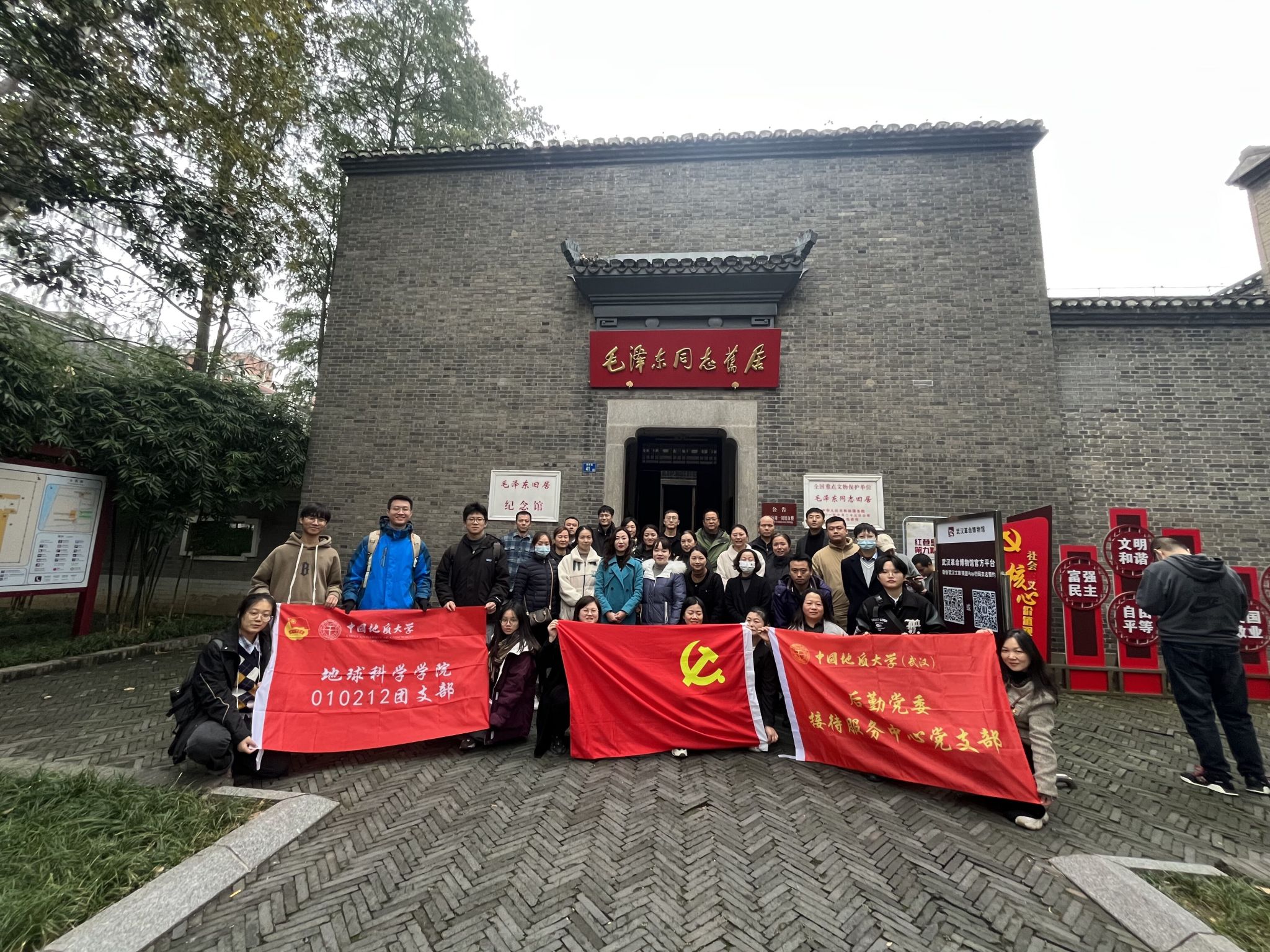 全体人员依次参观了武汉革命博物馆下辖的武昌中央农民运动讲习所旧址与毛泽东同志旧居。武昌中央农民运动讲习所旧址是第一次国共合作时期毛泽东同志倡议创办并主持的一所培养全国农民运动干部的学校。党员群众和同学们依次参观了教务处、办公室、学生寝室、大操场,直观地了解了当时被培养的农民运动干部的学习与生活环境。
