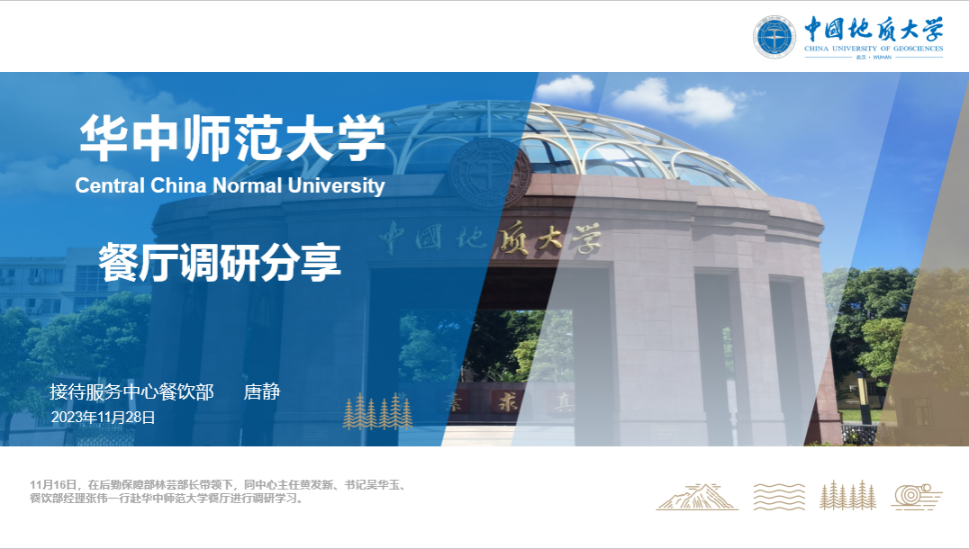 发展对象唐静同志就调研华中师范大学桂香园餐厅及沁园春商业综合体的教工餐厅及包间进行了学习分享。她向大家介绍了桂香园及沁园春的管理制度、经营模式及智能化的结算系统等。通过展示参观照片,重点分享了后厨地面干净无积水、整体功能布局合理、设施设备完善摆放科学、规章制度健全上墙公示等优秀做法。她表示,将借鉴其他高校的先进的管理经验结,打开工作思路,不断学习、总结和改进,努力提升教工餐厅和包间的整体服务水平,进一步满足广大师生的个性化用餐需求,力争打造师生满意餐厅。