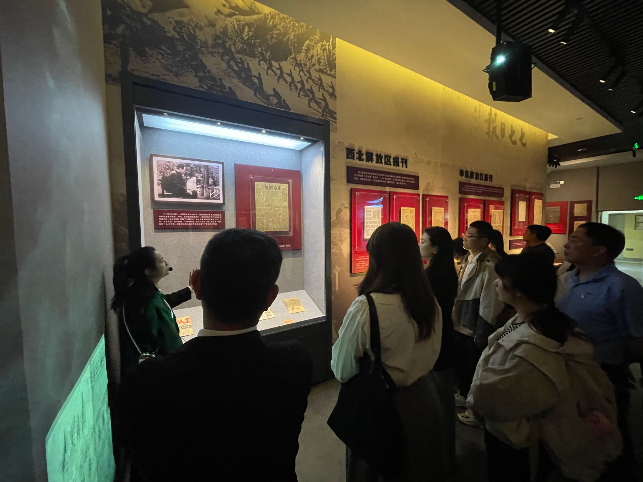 随后,大家在讲解员的带领下,按照中国共产党历史脉络,参观了中国共产党创立初期、大革命时期、土地革命时期、全民抗战时期、全国解放战争时期、社会主义建设时期、改革开放时期及走进新时代等八个时期的具有珍贵历史文献价值的报纸、期刊、实物。