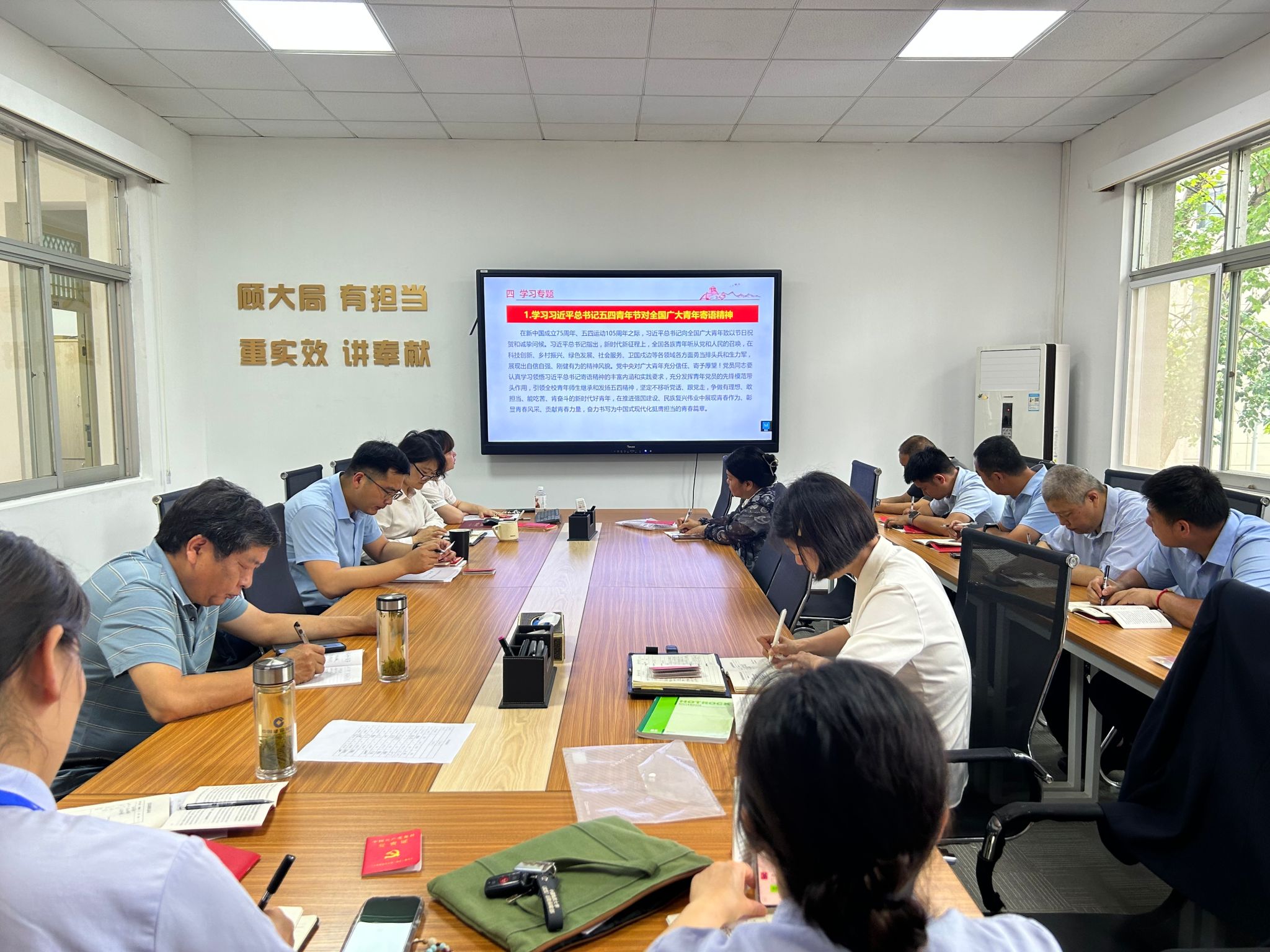 支部宣传委员兼纪检委员王冲同志带领大家学习习近平总书记五四青年节对全国广大青年寄语精神。习近平总书记的殷切寄语,对新时代新征程上青年一代挺膺担当给予肯定、寄予厚望,对各级党组织坚持党管青年工作原则、关心青年成长、支持青年建功立业提出明确要求,要不折不扣将习近平总书记重要寄语精神贯彻到后勤工作的全过程、各方面。