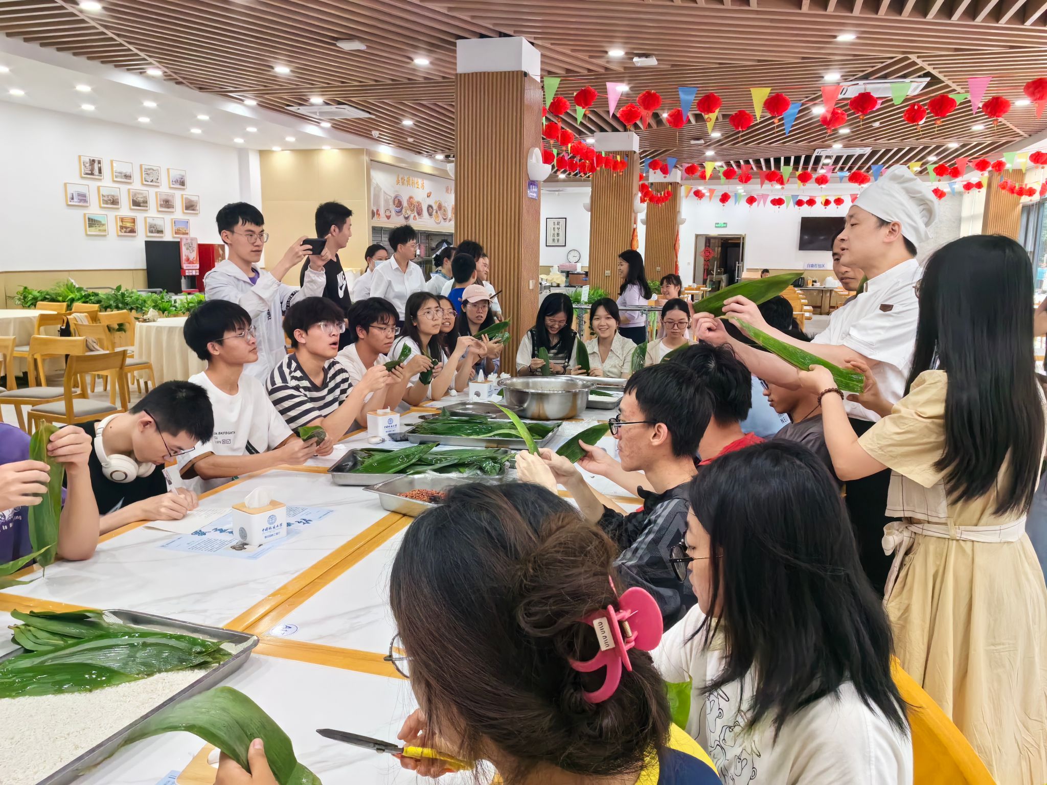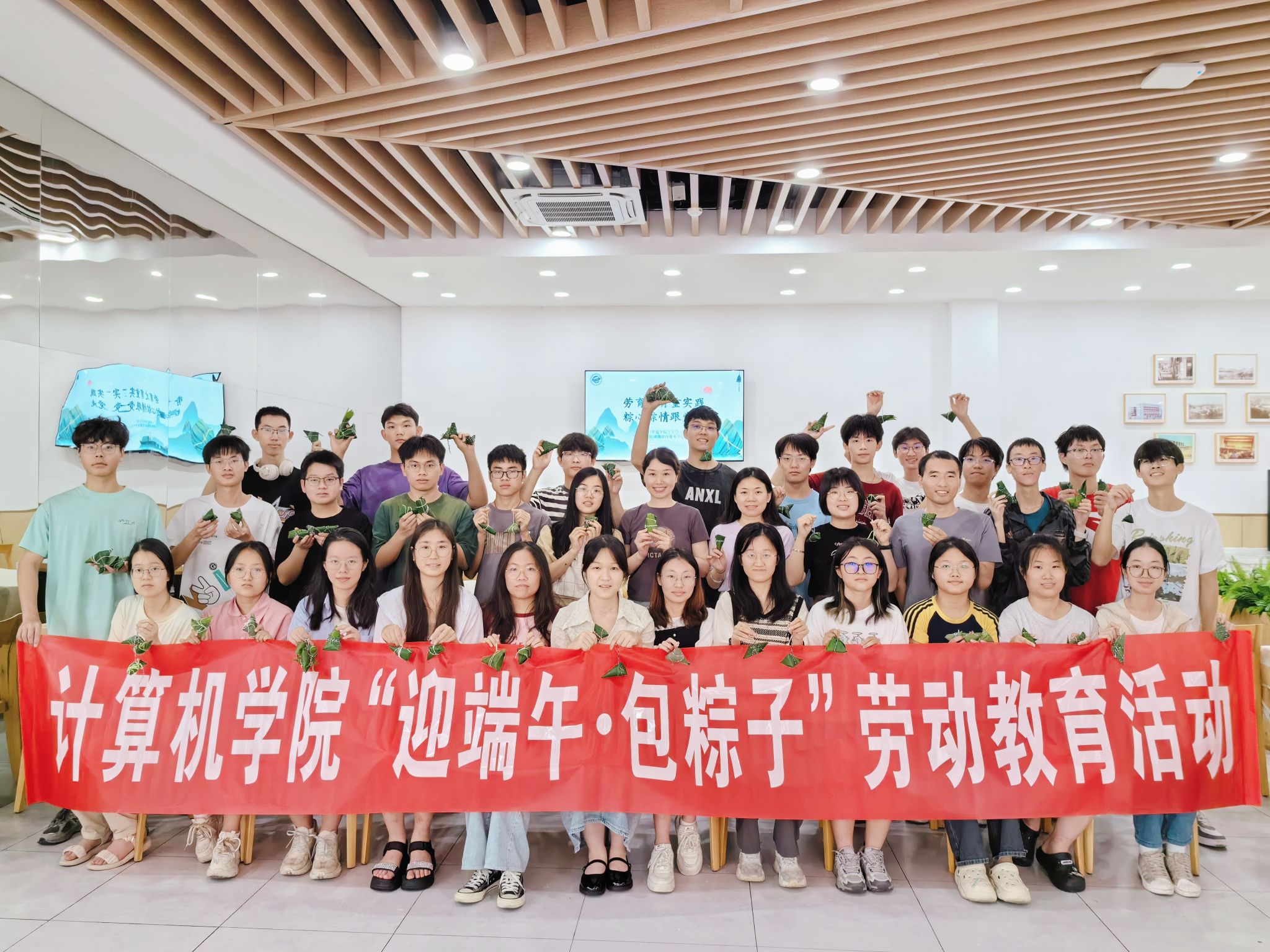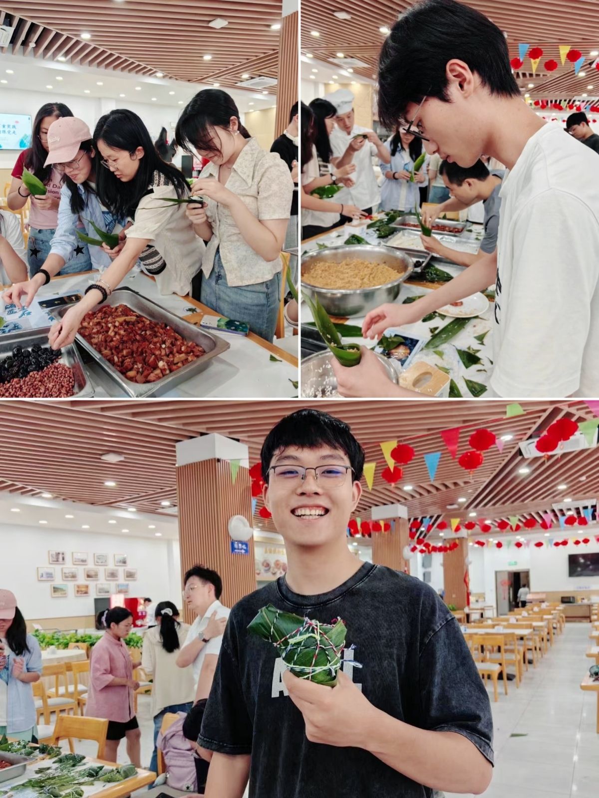 6月10日端午当天,计算机学院组织了30余名大一学生,齐聚教工餐厅,围成团圆长桌,共度美好时光。“三角、冰淇淋、元宝、大鸭腿……”一个个创意满满的手工粽子出炉,现场欢声笑语,同学们纷纷表示“意犹未尽、印象深刻”。