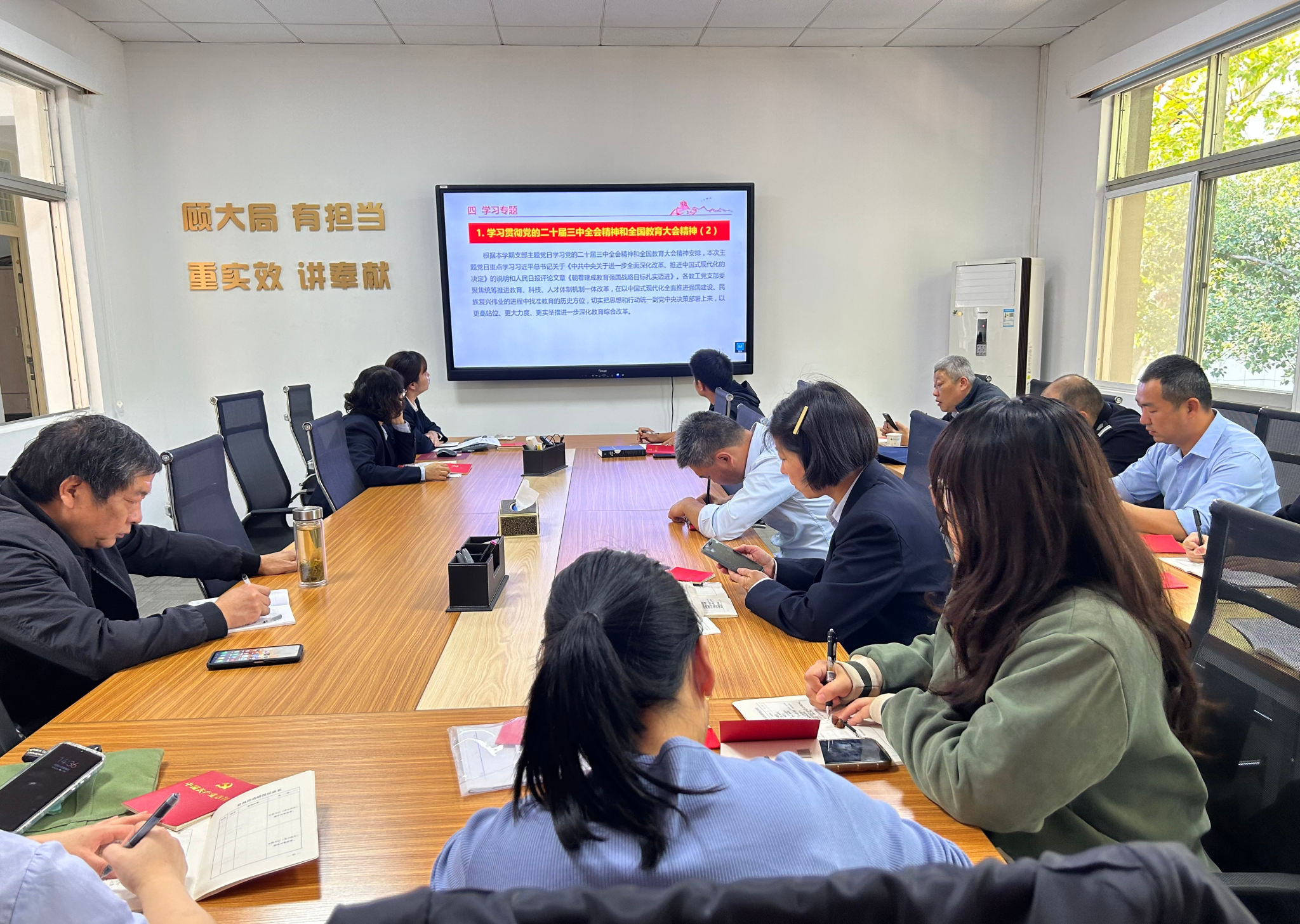 在完成奏唱国歌、重温入党誓词等规定动作后,王皓同志领学《中共中央关于进一步全面深化改革、推进中国式现代化的决定》的说明和人民日报的评论文章《朝着建成教育强国战略目标扎实迈进》并分享心得。学习要求全体党员需聚焦统筹推进教育、科技人才体制机制一体改革,在以中国式现代化全面推进强国建设,民族复兴伟业的进程中找准教育的历史方位,切实把思想和行动统一到党中央决策部署上来,以更高站位、更大力度、更实举措进一步深化教育综合改革。