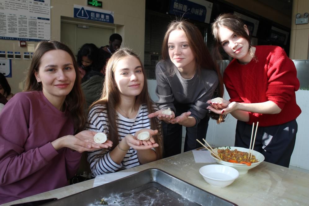 本次特邀bevictor伟德官网(武汉)—— 俄罗斯伊尔姆国立科研理工大学“一带一路”菁英之旅冬令营学员和国际预科生共45名来自二十几个国家的学生一同开展结对领航包饺子活动。