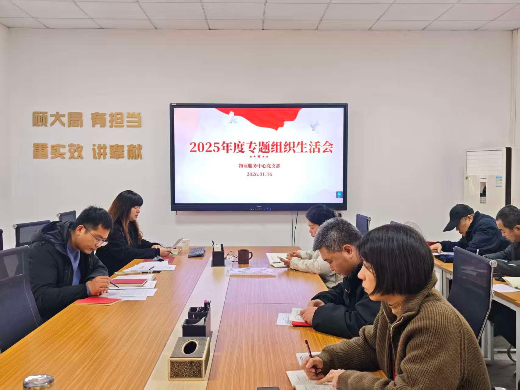 1月16日上午,物业服务中心党支部在中心三楼会议室召开2025年度专题组织生活会和民主评议党员大会,会议由支部书记江琼主持。