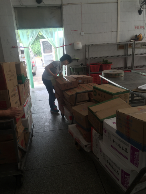 不管严寒酷暑,每日清晨6:30分,她都会准时到岗,对食堂各类物资进行验收,入库,严把物资验收的第一道大关。验收货物是一项非常需要耐心和细心的工作,送来的每一种物资需要一项一项检查它们的品质,过秤记入,分发到班组。物资的验收、入库、分配等环节工序繁琐、枯燥,小燕子在这个岗位上一做就做了十几年。今年九月,饮食服务中心通过投标换了一批新的供货商,他们对中心的许多送货程序还不太了解,这着实加大了保管员的工作量,她每日不仅要订货、收货、发货,还要叮嘱他们哪些是我们食堂常用物品,它们的种类、规格、数量等等,这样一来就非常的耗时耗力,若大的学三食堂只有一名保管员,为了更好的完成工作,她经常加班加点,却不曾有过一丝怨言。