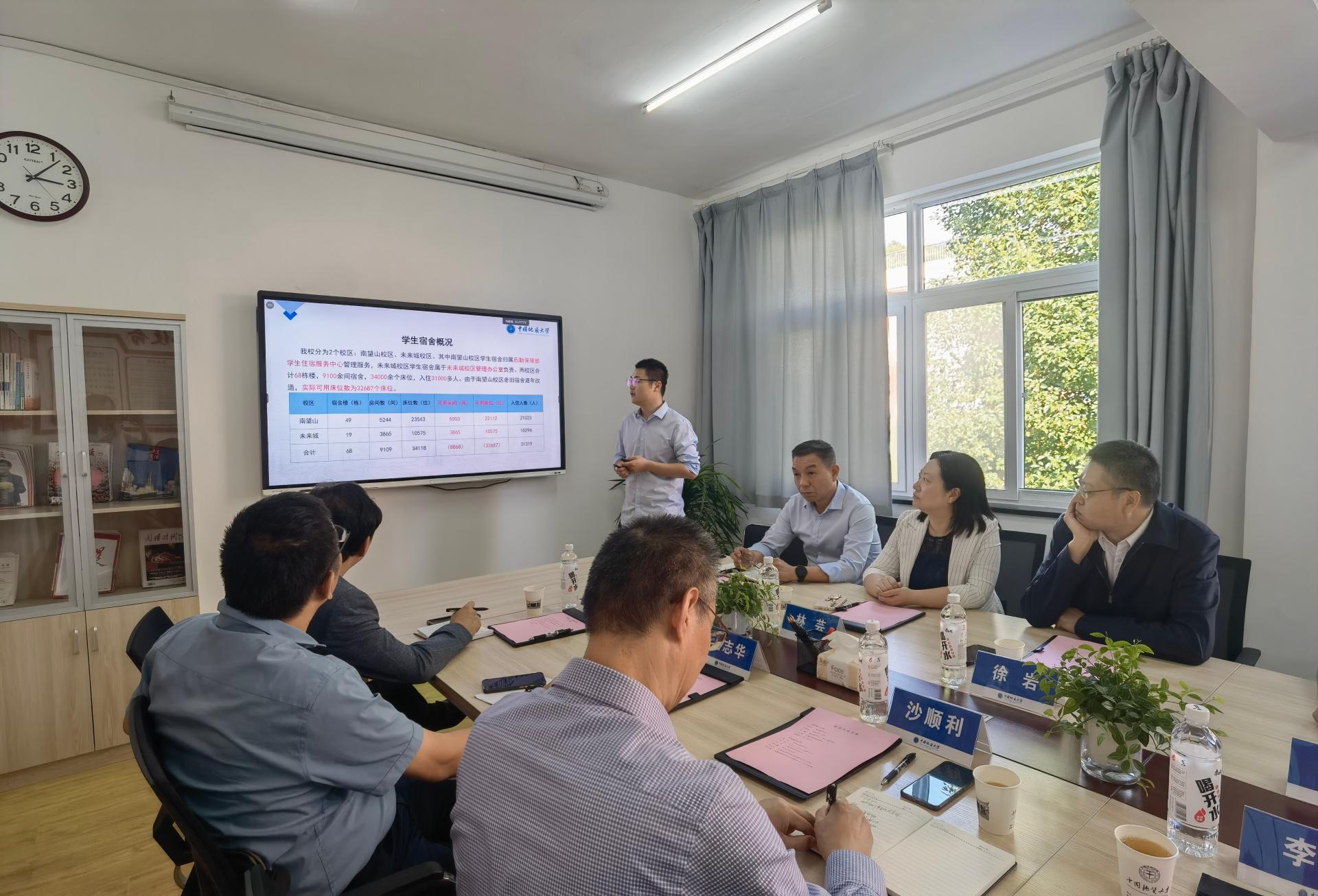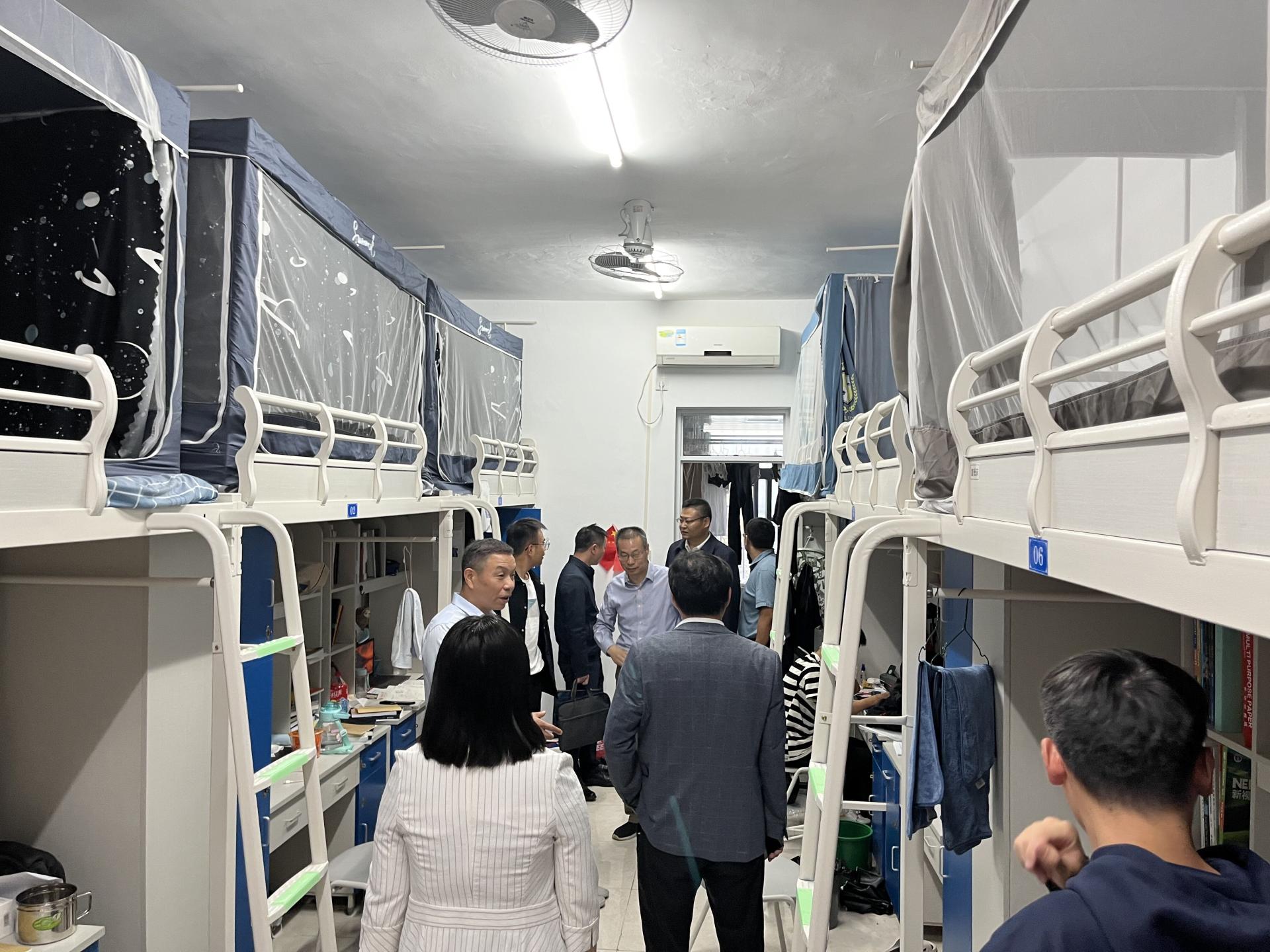 会议结束后,调研组一行在部长徐岩的陪同下参观了我校西区56、54、57栋学生宿舍,对门禁实际使用场景、学生寝室、文化建设等方面进行实地走访。