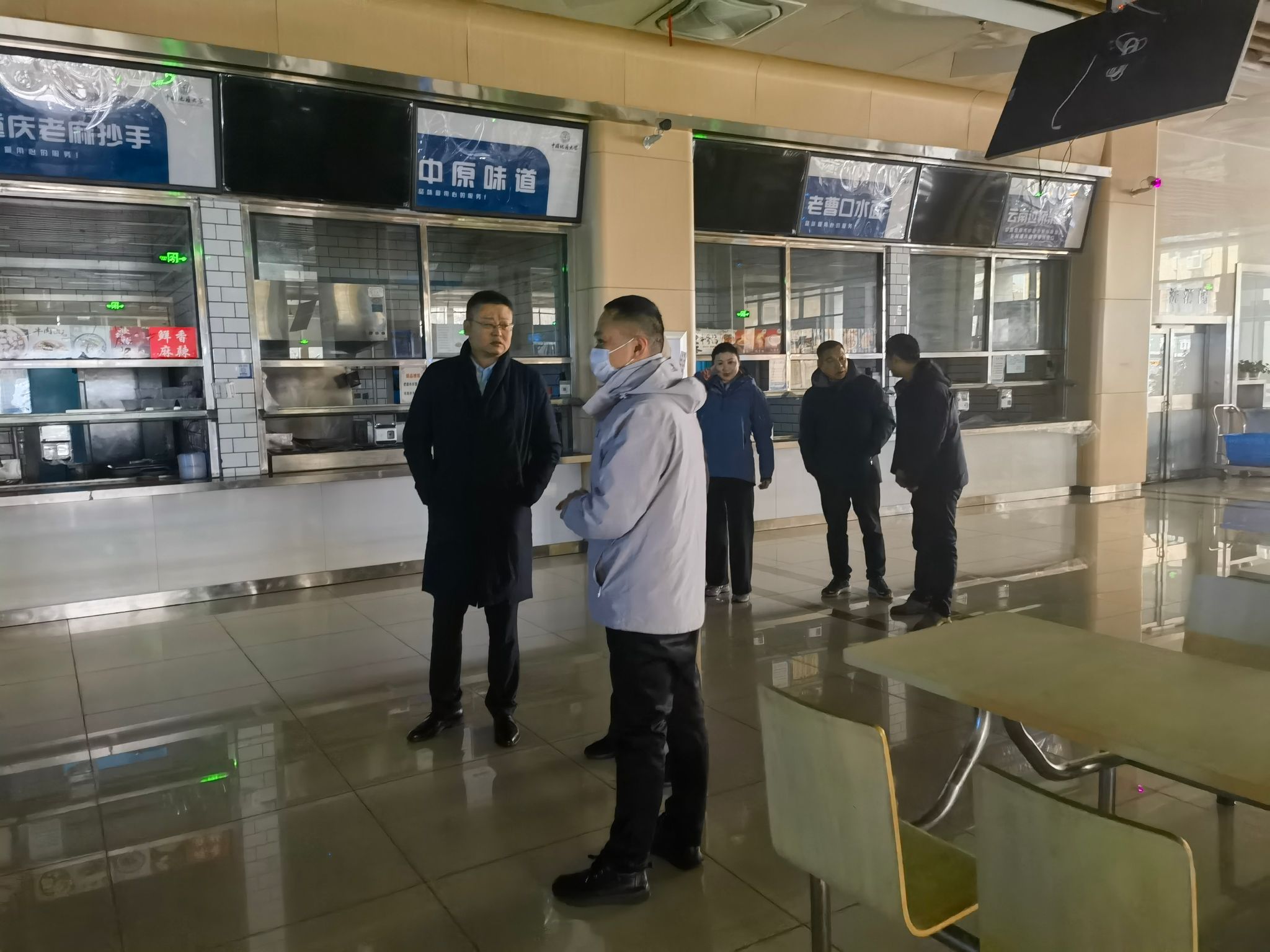 安全检查分为东区和西区两组同时进行,检查重点为寒假期间开放的值班食堂、值班宿舍、各区域超市、商铺等,以及对食品安全、水电安全、设备设施安全、车辆安全、在建项目施工安全治理情况等。