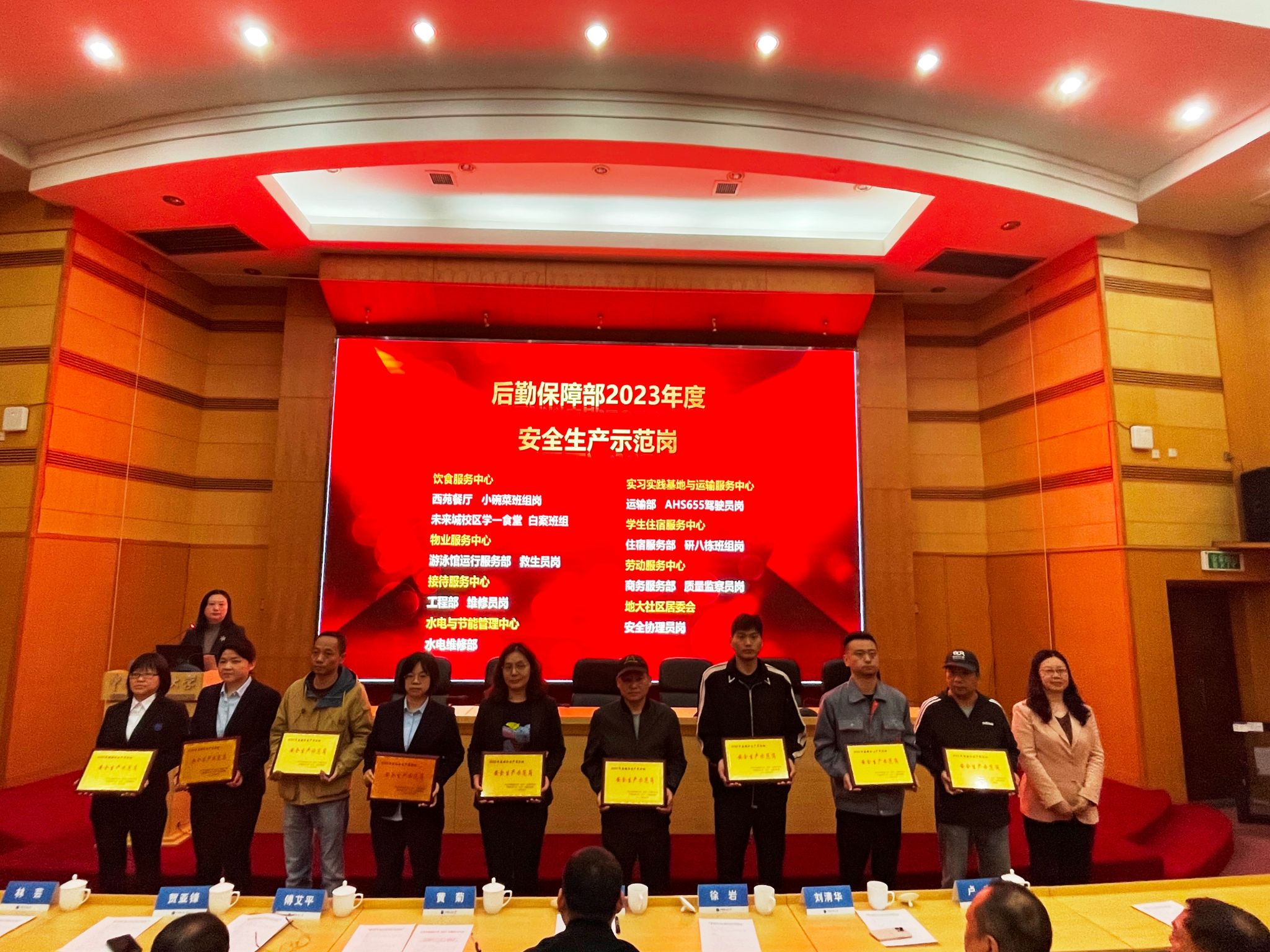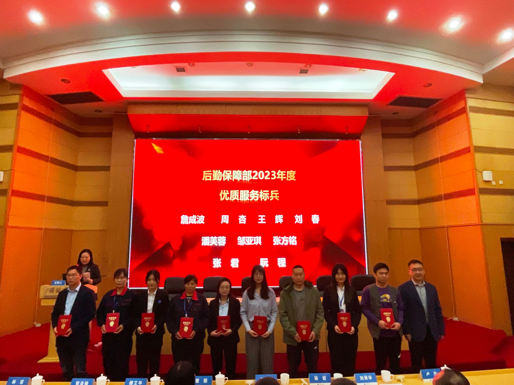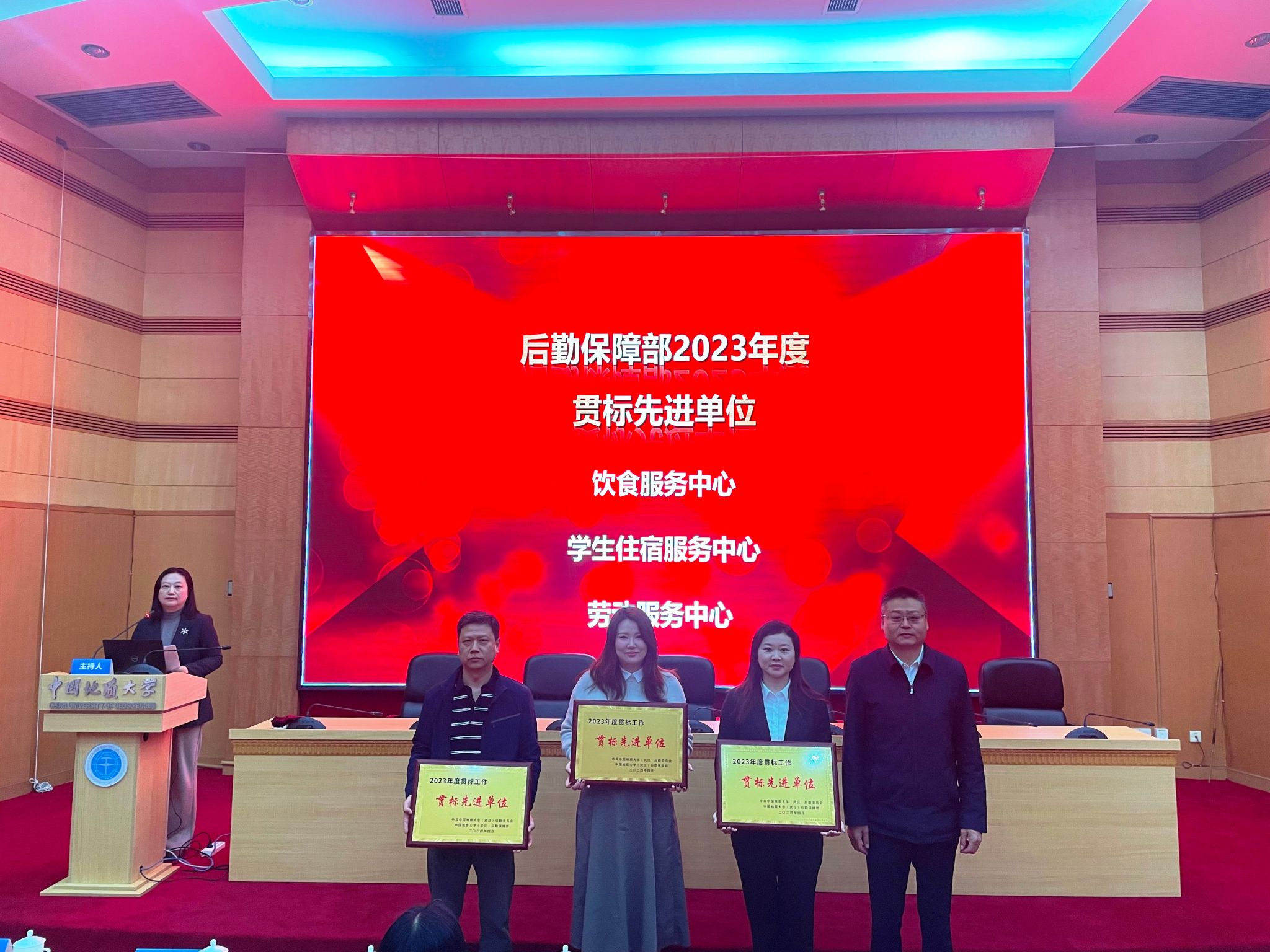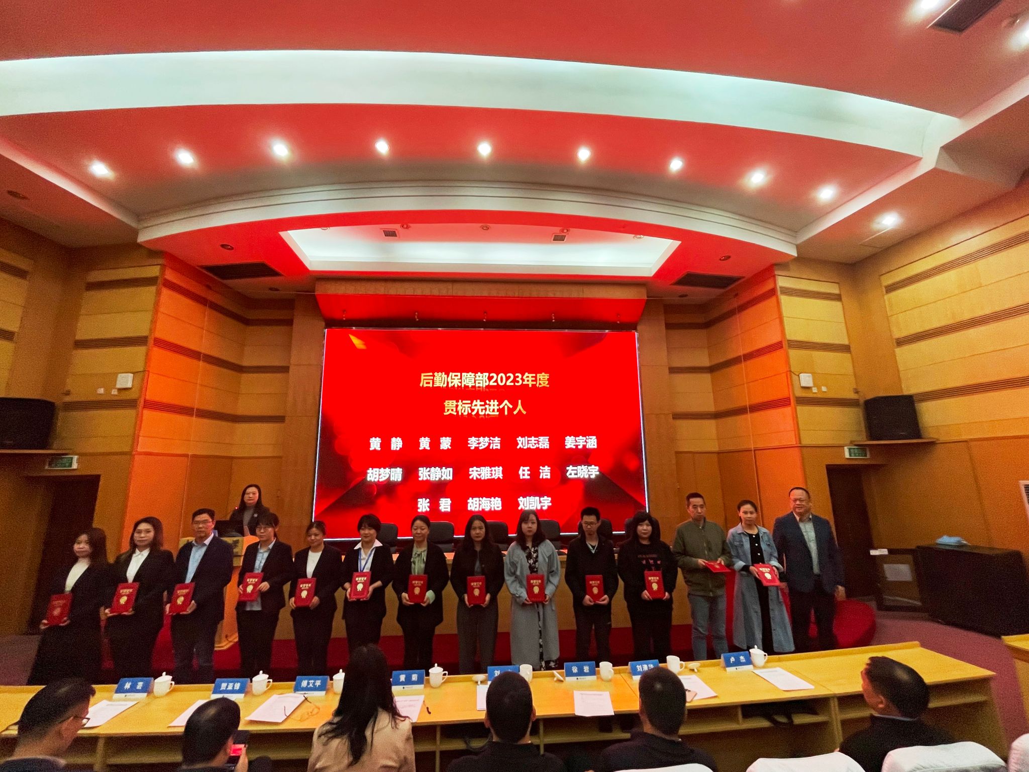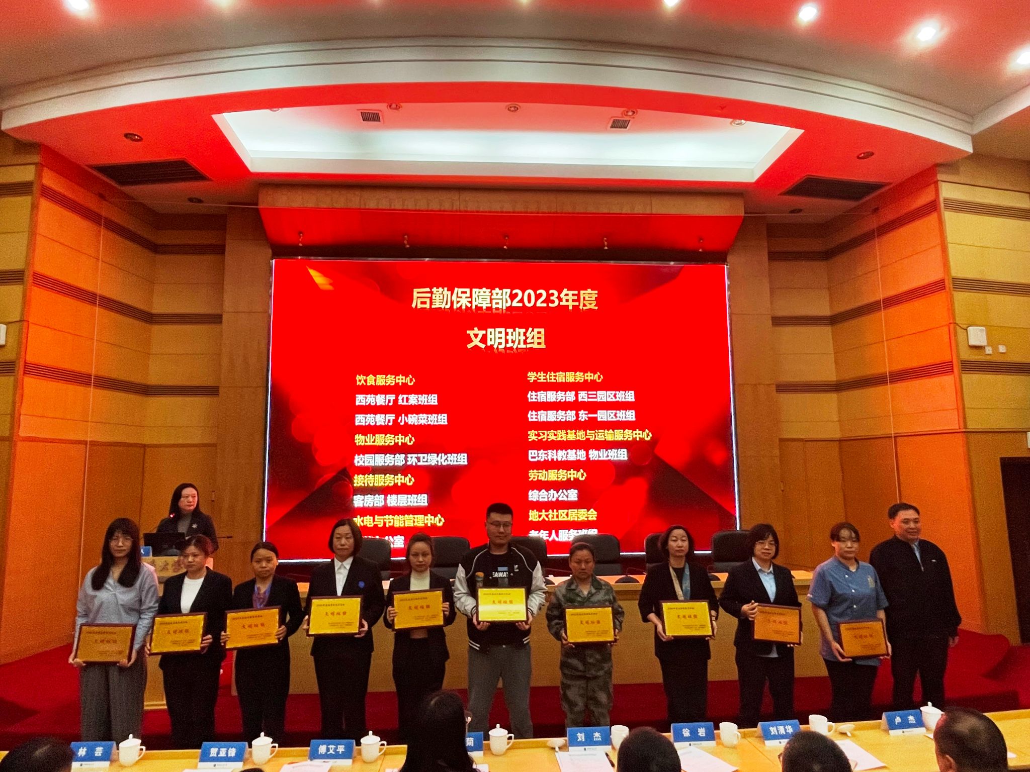 大会在庄严的国歌齐唱中开幕。后勤党委书记黄菊宣读《中共bevictor伟德官网(武汉)后勤委员会 bevictor伟德官网(武汉)bevictor伟德官网关于表彰2023年度先进集体、优秀个人的决定》。大会表彰优秀中心3个、优秀科室2个、安全生产示范单位2个、贯标先进单位3个,安全生产示范岗9个、文明班组10个、2023年度服务品牌/样板窗口10个,优秀中心班子成员8名、优质服务标兵18名、贯标先进个人13名。刘杰副校长和bevictor伟德官网部领导分别为获奖集体和个人颁奖。