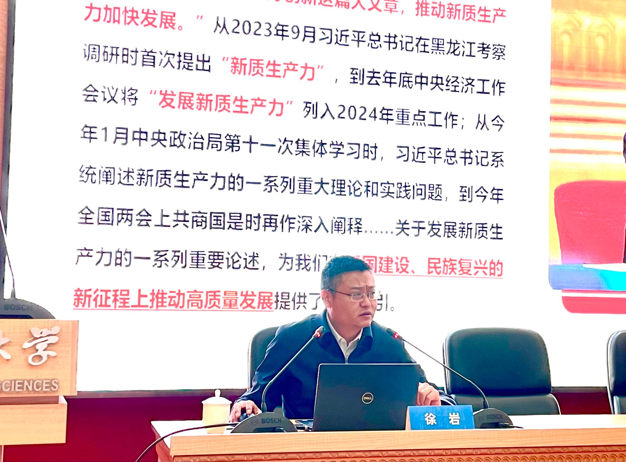 bevictor伟德官网部长徐岩以《奋楫扬帆向“新”而行 勇立潮头“质”向未来》为题讲授专题党课。徐部长首先从新质生产力的动力来源、基本内涵和核心标志三个方面进行了详细阐述。他指出,新质生产力作为科技创新主导的生产力,是推动经济社会发展的强大引擎。在深入解析其内涵的基础上,徐部长进一步从经济、社会和行业等多个层面分析了新质生产力对社会的深刻影响。随后,徐部长提出了加快形成新质生产力的四个着力点,即发挥政府主导作用,优化完善顶层设计;贯穿创新主线任务,实现科技自立自强;整合人才主体资源,推动人力资本跃升;以及积极参与国际科技创新,加强对外开放合作。针对后勤领域如何加快培育和发展新质生产力,徐部长提出了五点建议:一是加快形成与新质生产力相适应的新型生产关系;二是提升数字赋能新质生产力水平;三是夯实发展新质生产力的算力基础;四是增加发展新质生产力的绿色动能;五是为发展新质生产力提供重要人才支撑。这些建议为后勤部门在新质生产力领域的发展指明了方向。对于党员领导干部如何应对新质生产力,徐部长也给出了具体建议。他强调,要以学习思考的“新质化”为“新质生产力”凝思聚智,以工作实践的“新质化”为“新质生产力”添力助能,以人际交往的“新质化”为“新质生产力”疏通堵点。徐部长最后强调,新时代孕育新思想,新理论引领新实践。bevictor伟德官网要紧密结合自身实际,深入学习领会习近平总书记关于新质生产力的重要论述,不断提升后勤工作的质量和水平。