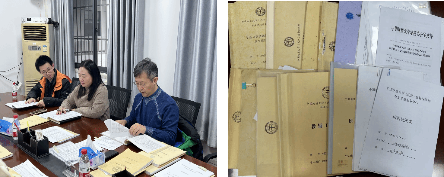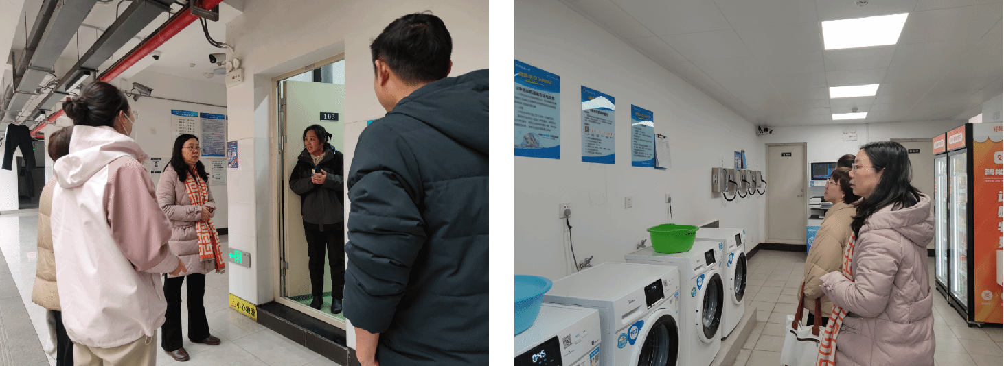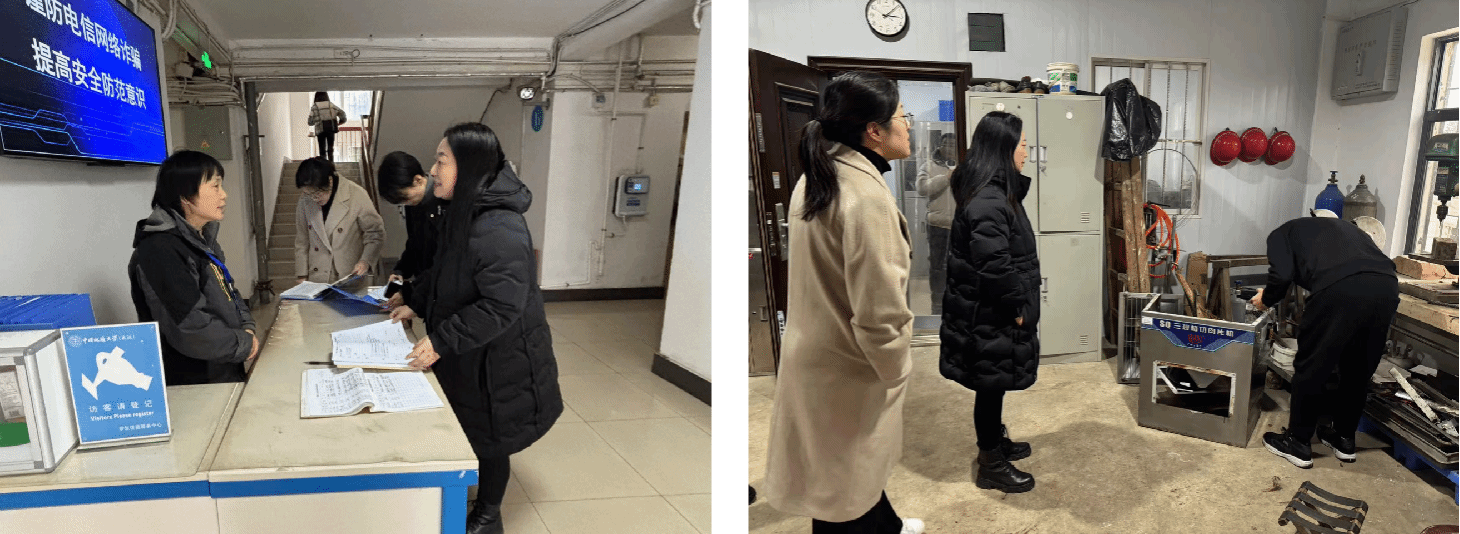 实地检查环节,评估小组分三组分别对东、西、北区的公共楼宇、学生公寓和校园环境实地抽检,从制度、规范、卫生、安全等方面进行细致全面地查验并逐项打分。