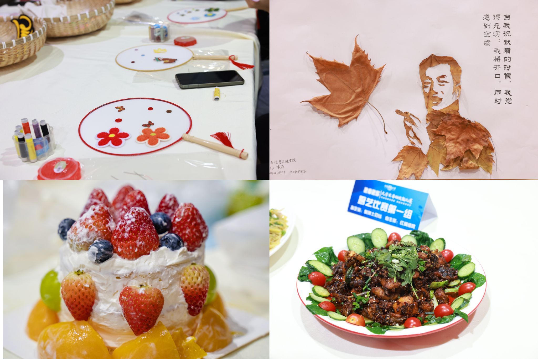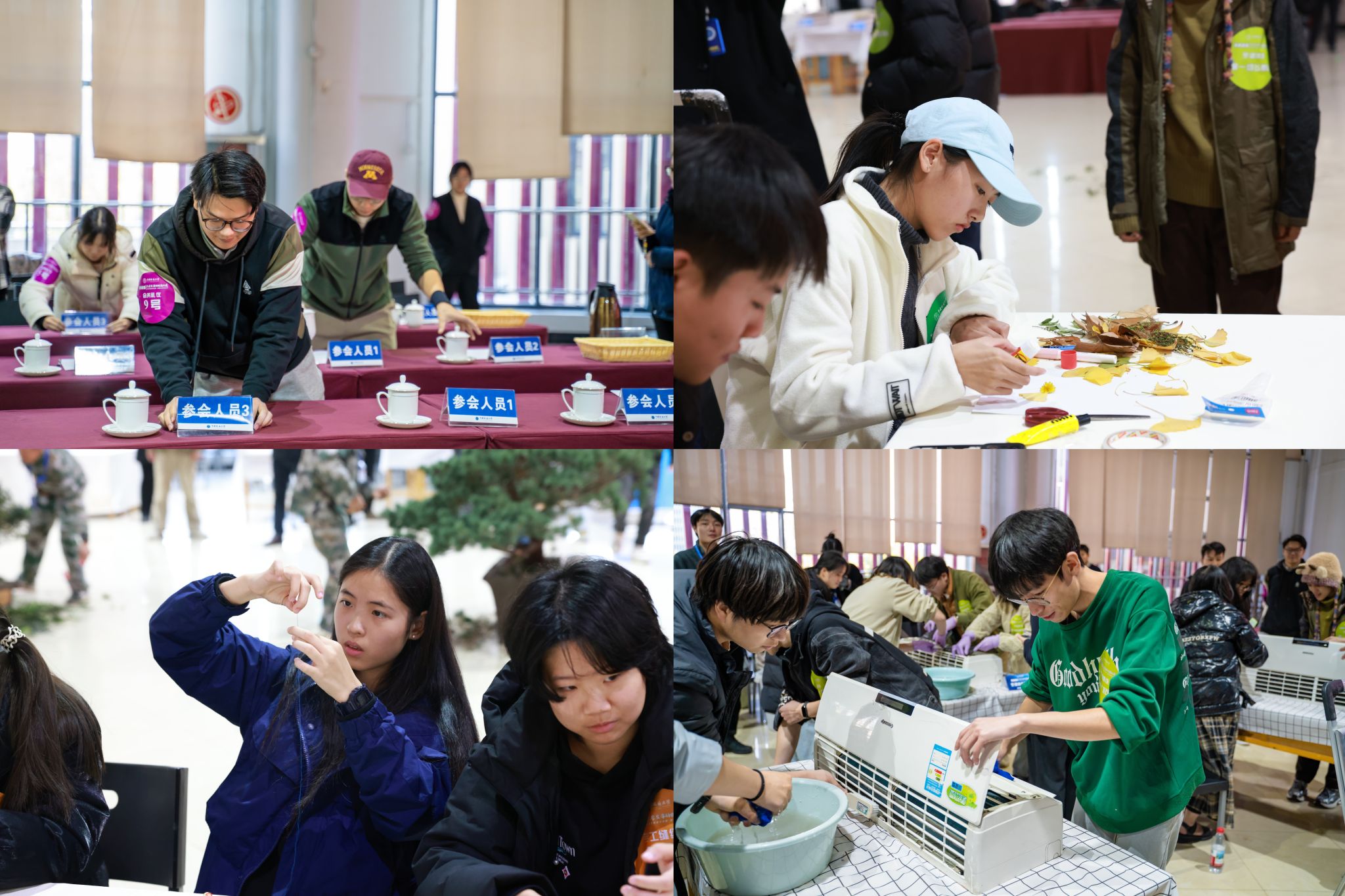 下午14:30,比赛正式拉开帷幕。本次比赛设置叶贴画创作、手工缝纫、甜点创作、空调清洗、会务礼仪、厨艺比拼等9项实践项目,覆盖生活技能、职业素养、审美创造等多个维度。