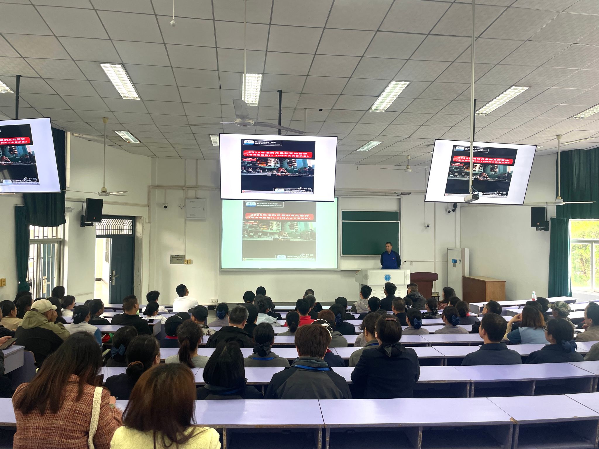 为提升后勤保障员工消防安全意识和应急处置能力,筑牢校园消防安全防线,4月24日下午,bevictor伟德官网联合安全保卫部在西区教三楼208教室开展消防安全专题培训。各中心经理、副经理、新入职人员及一线员工代表共150余人参加,培训由党建人事科科长江琼主持。