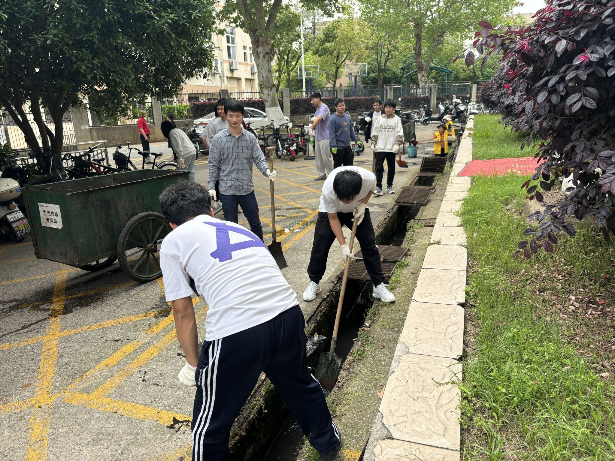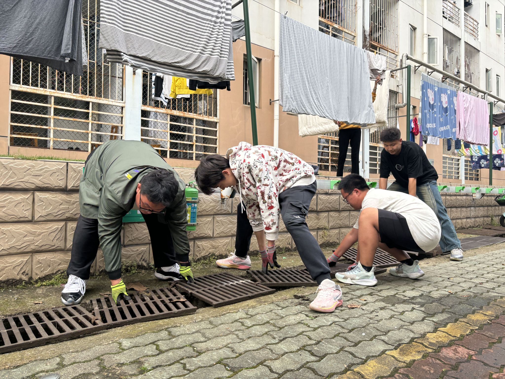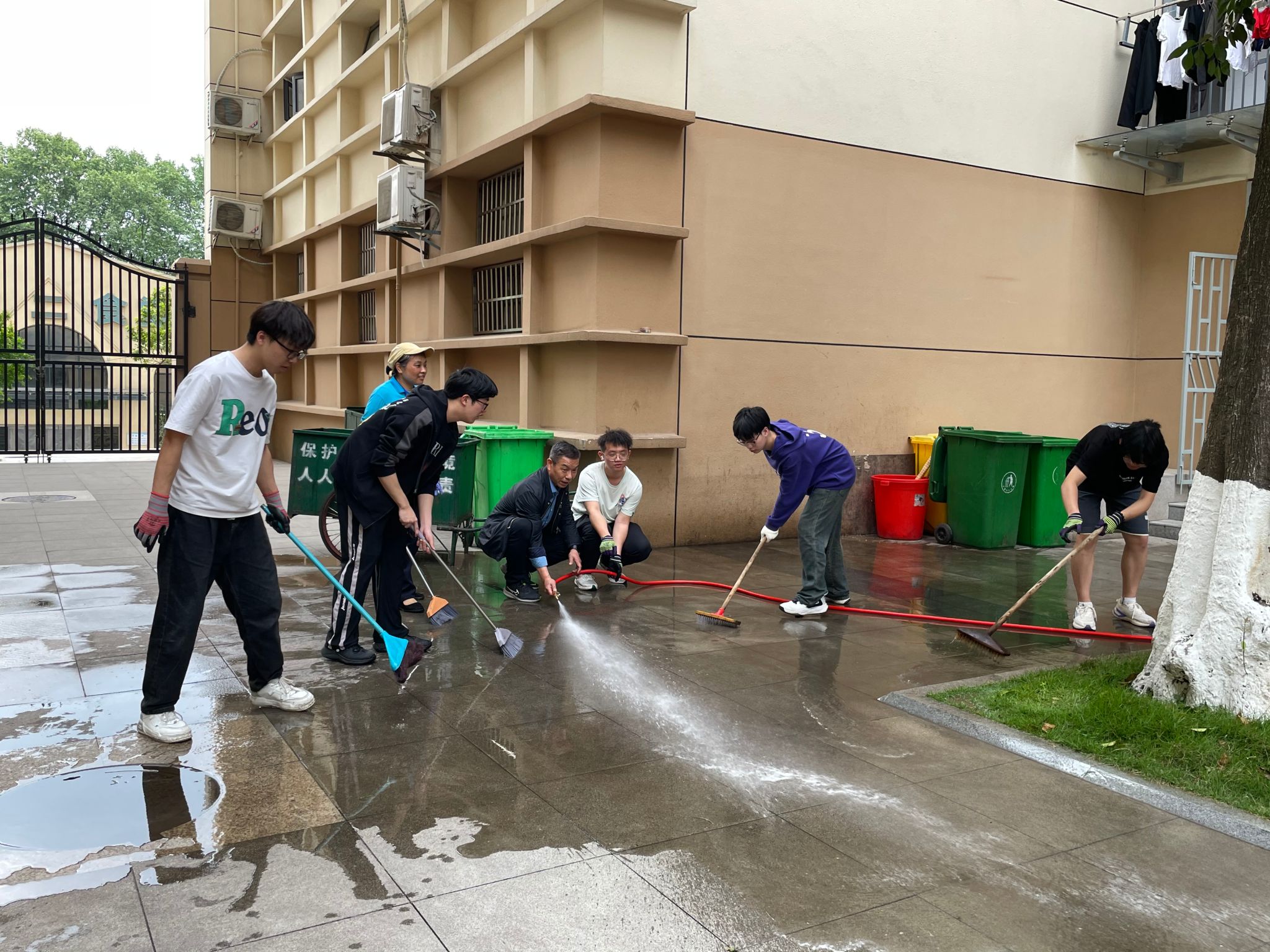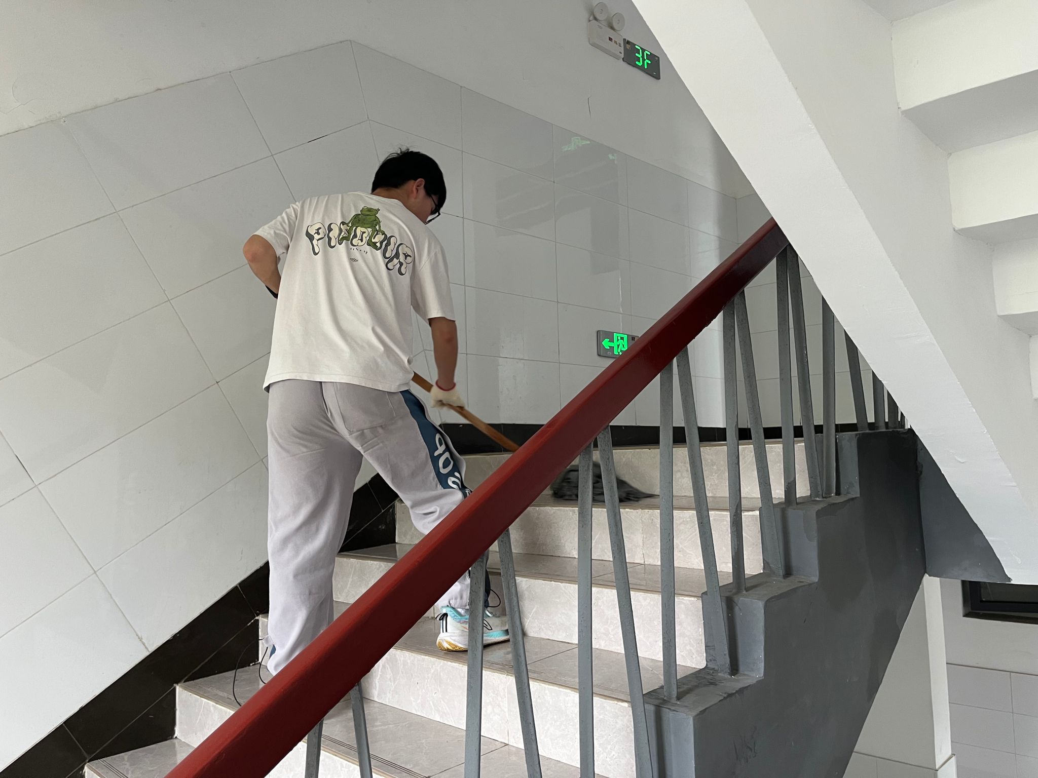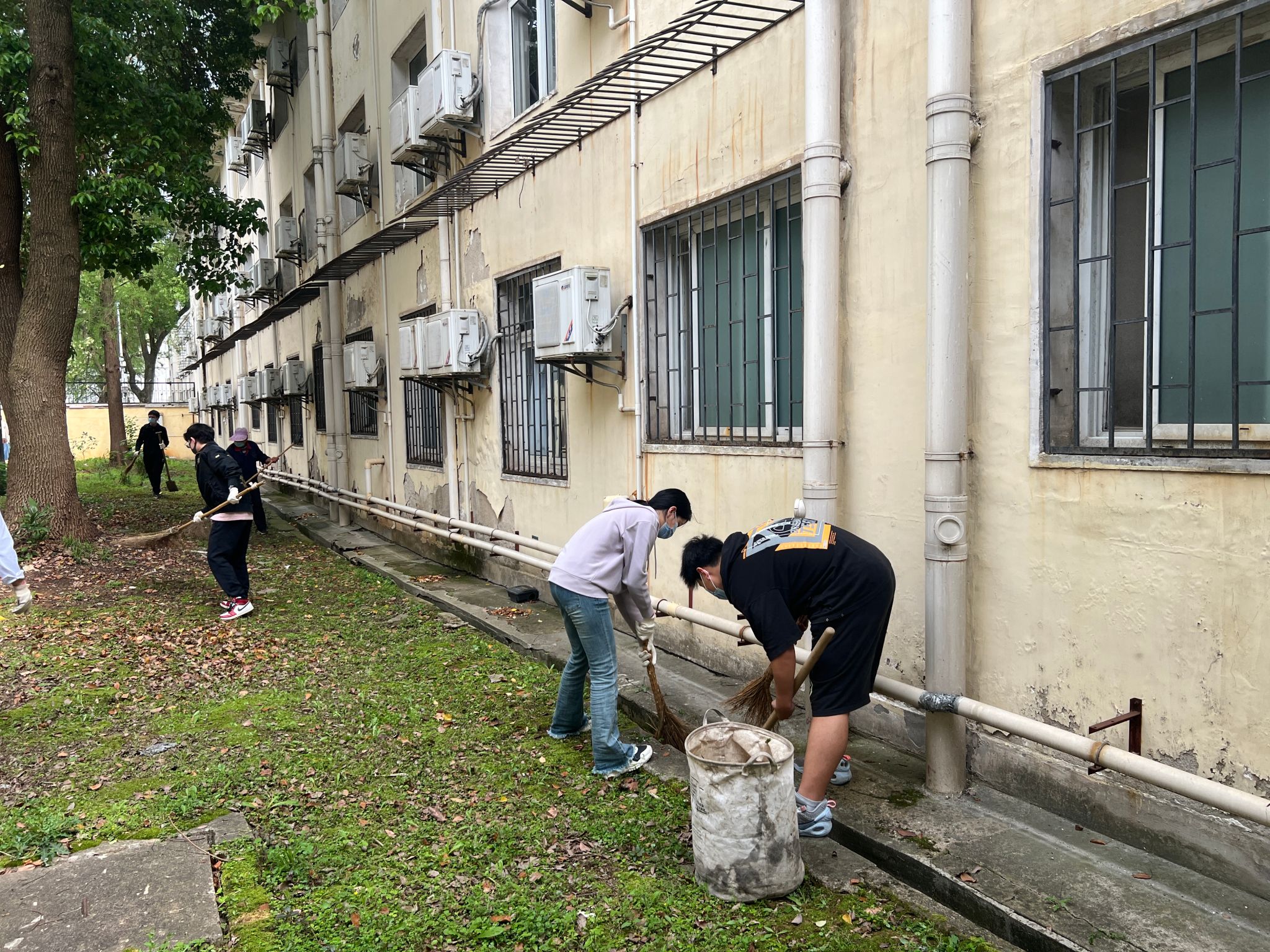 为确保活动的顺利进行,中心提前做好宣传动员,明确安全事项和劳动步骤。此次活动分为东区研8栋、西区57栋、北区5-8栋三组,同步开展楼宇内公共区域清洁卫生擦拭及院落环境整治。活动过程中,同学们戴着防护手套,拿起扫把、抹布、铁锹等工具,分工明确、默契配合,积极开展拔除杂草、清扫院落、明沟清淤等工作。他们发扬了不怕苦、不怕累、不怕脏的优良品质,每一个角落都留下了他们认真劳动的身影。