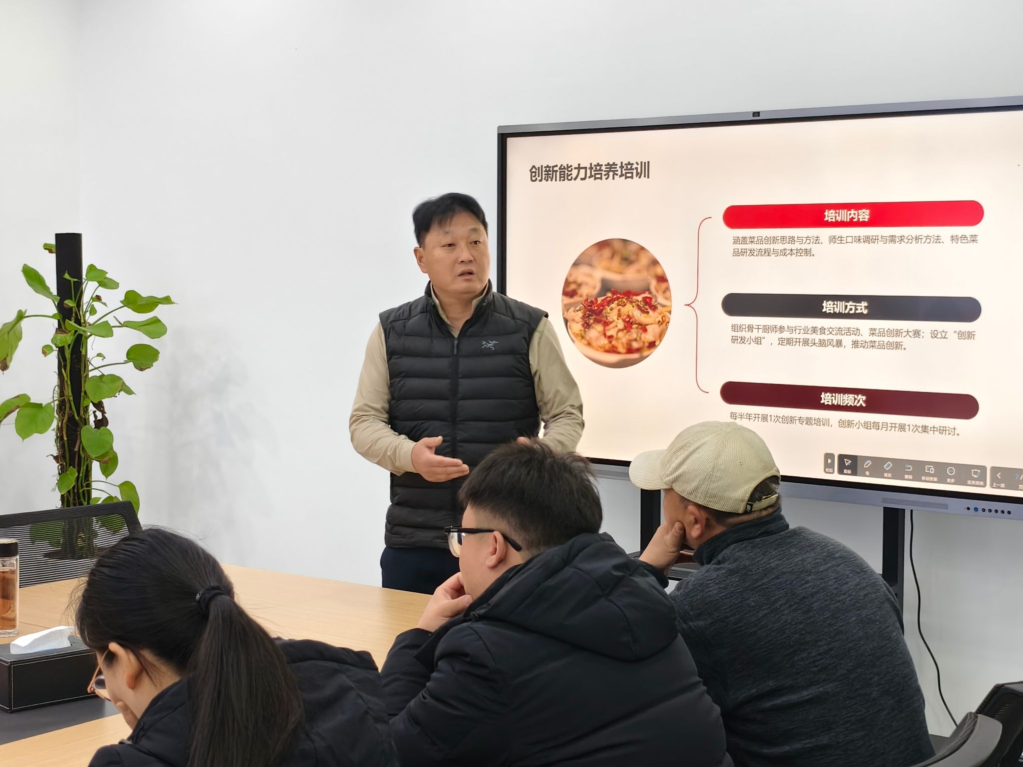 培训第二期,西苑餐厅厨师长潘秋林主讲“厨师技能培训体系的探索与实践”。他从构建长效培训机制、搭建交流竞技平台、完善激励考核、建立评估反馈闭环等四个方面,分享了专业化队伍建设的思考。培训以开放式研讨为主要形式,与会经理、厨师长踊跃建言,在思维碰撞中明确了新一年技能提升的方向与路径,为厨师团队的整体能力提升奠定基础。