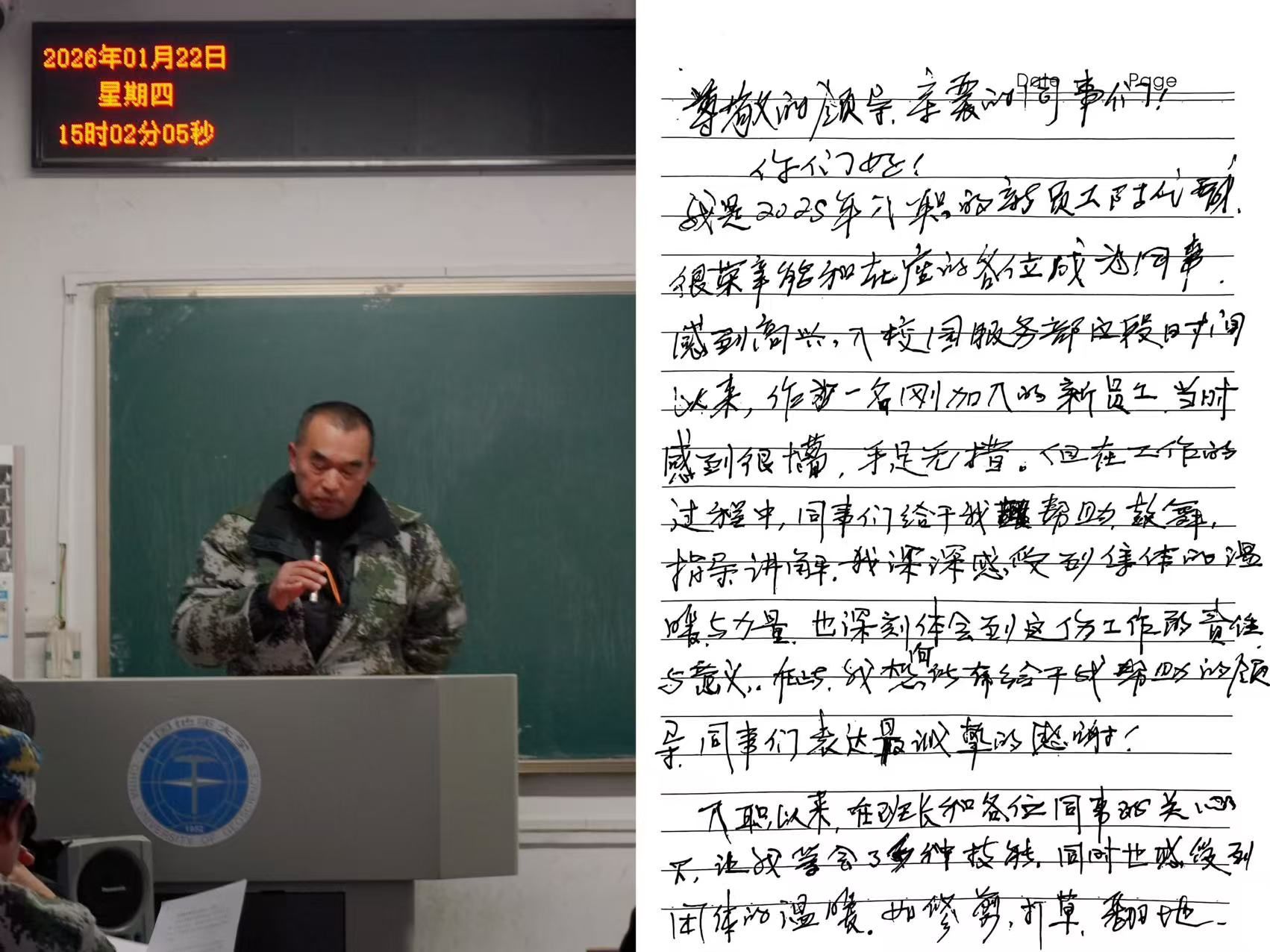 岁序更替,华章日新。正值学校复盘过往成效、锚定十五五规划蓝图、谋划高质量发展的关键阶段,物业服务中心近日召开年终总结大会,在员工代表发言环节,来自环卫绿化、保洁、秩序维护等不同岗位的员工代表,立足日常工作实例,用最朴实的话语、最真挚的情感,讲述扎根岗位、默默耕耘的服务故事。