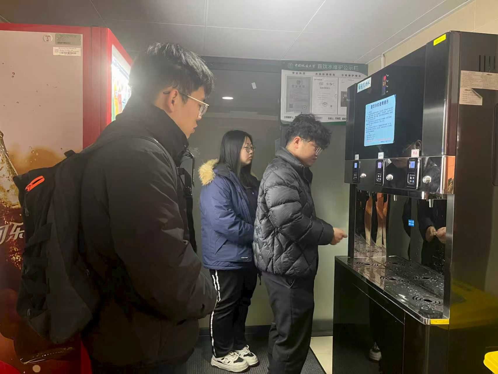 滤芯更换完成后,技术人员拿出专业水质检测笔,邀请学生代表共同参与现场水质检测工作。通过更换滤芯前后的水质数据与国家直饮水指标对比,对滤芯更换的实际效果与直饮水的安全达标情况进行了现场验证。“以前总觉得饮水机内部是‘看不见的盲区’,心里难免有顾虑。但今天在看完规范的操作流程和实打实的水质检测数据之后,彻底放心了!”学生代表刘同学在活动结束后感慨道。