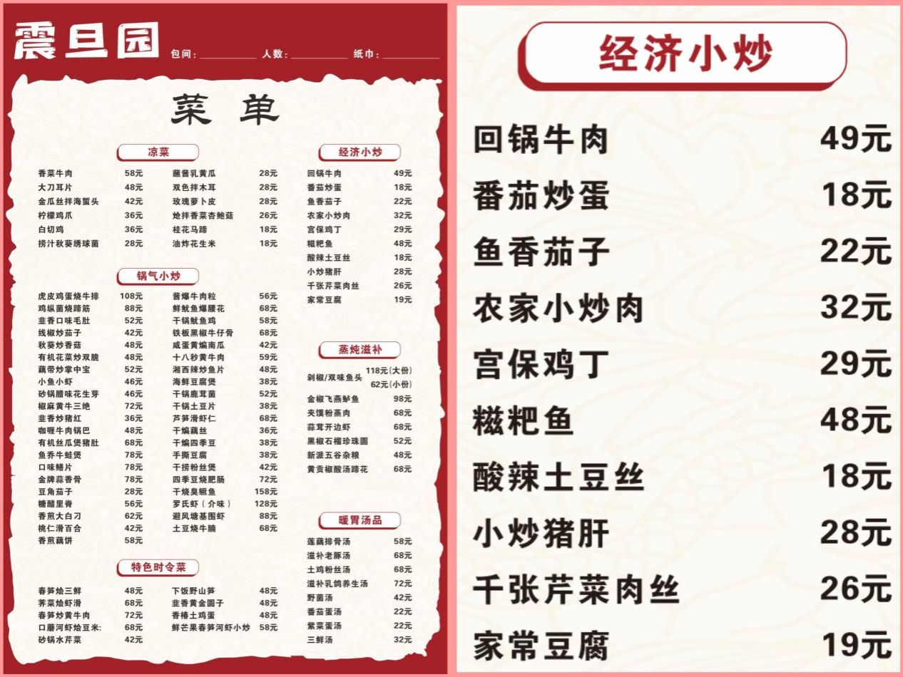 春日食鲜,正当其时。震旦园餐厅全新春季菜单已全面上线,本次升级新增“经济小炒”全新品类,特别推出多款18-49元高性价比菜品,菜品优惠,服务升级!无论是精致宴请接待菜,还是实惠经济小炒,都能满足您的不同用餐需求,欢迎各位前来打卡,解锁舌尖上的春日美味,感受春日里的烟火温情。
