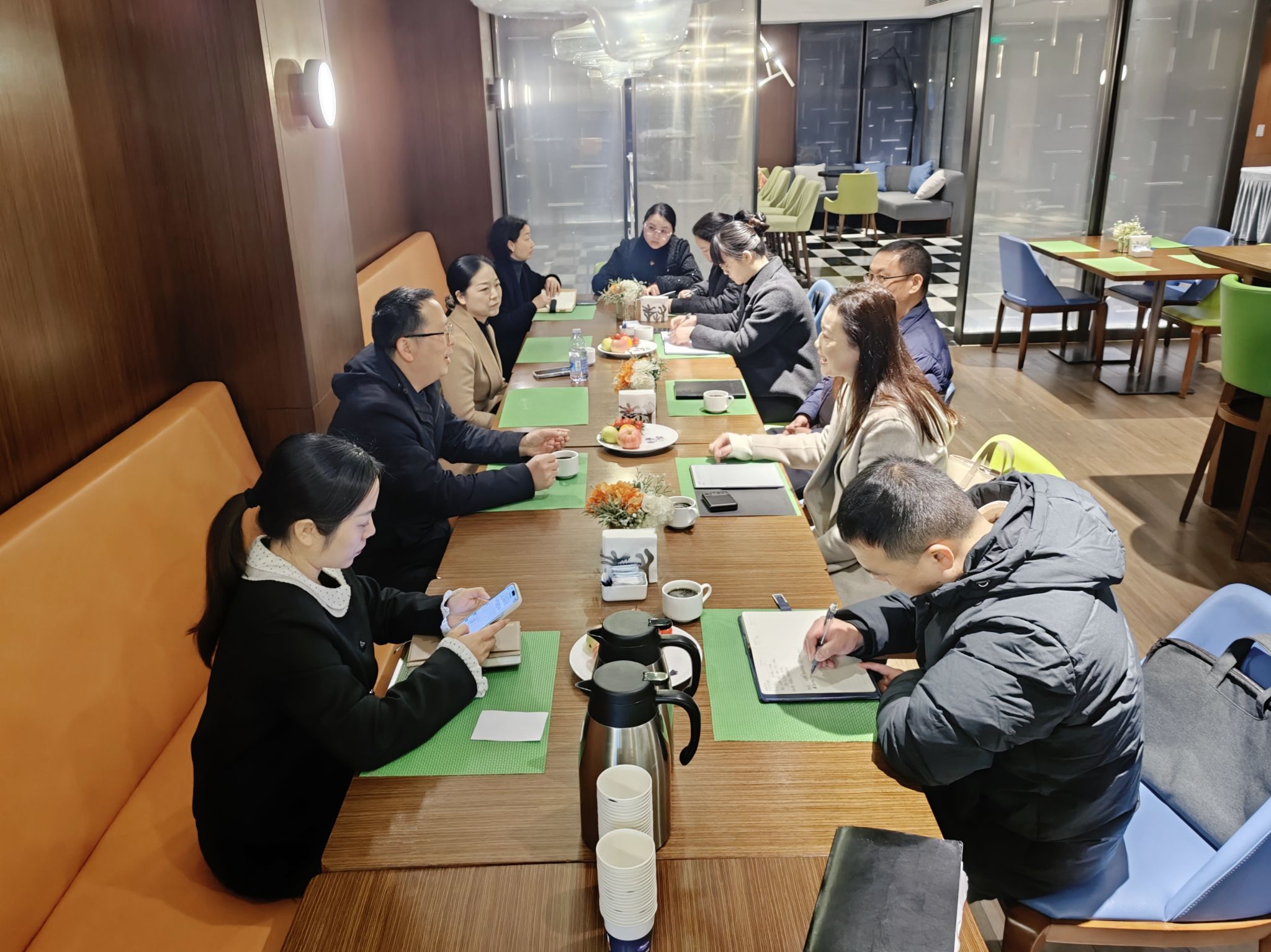 随后,双方召开专题座谈会。会上,酒店负责人详细介绍了酒店的品牌定位、运营管理体系、服务质量管控、客户关系维护等方面的经验做法,重点分享了其在组织架构建设、标准化服务流程搭建、特色服务打造及市场渠道开拓等方面的实践成果,包括人员岗位编制、食宿会议接待、周边高校辐射等举措的落地经验。同时,双方围绕服务过程中的难点问题、客户需求挖掘、服务品质提升等议题展开深入交流,酒店负责人结合自身行业经验,向调研组提出了针对性的意见和建议。