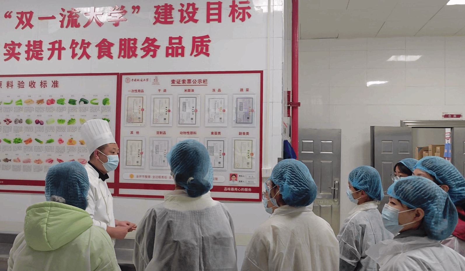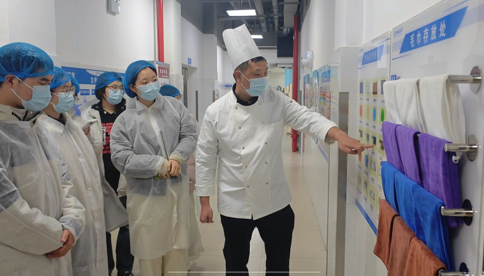 活动首日,东苑餐厅率先拉开帷幕。20名学生代表穿戴好一次性头套与鞋套,有序步入后厨重地,近距离感受美食诞生的幕后故事。从锃亮的操作台到规范有序的食材存储区,同学们亲眼见证了食堂保障食品安全的坚实壁垒。