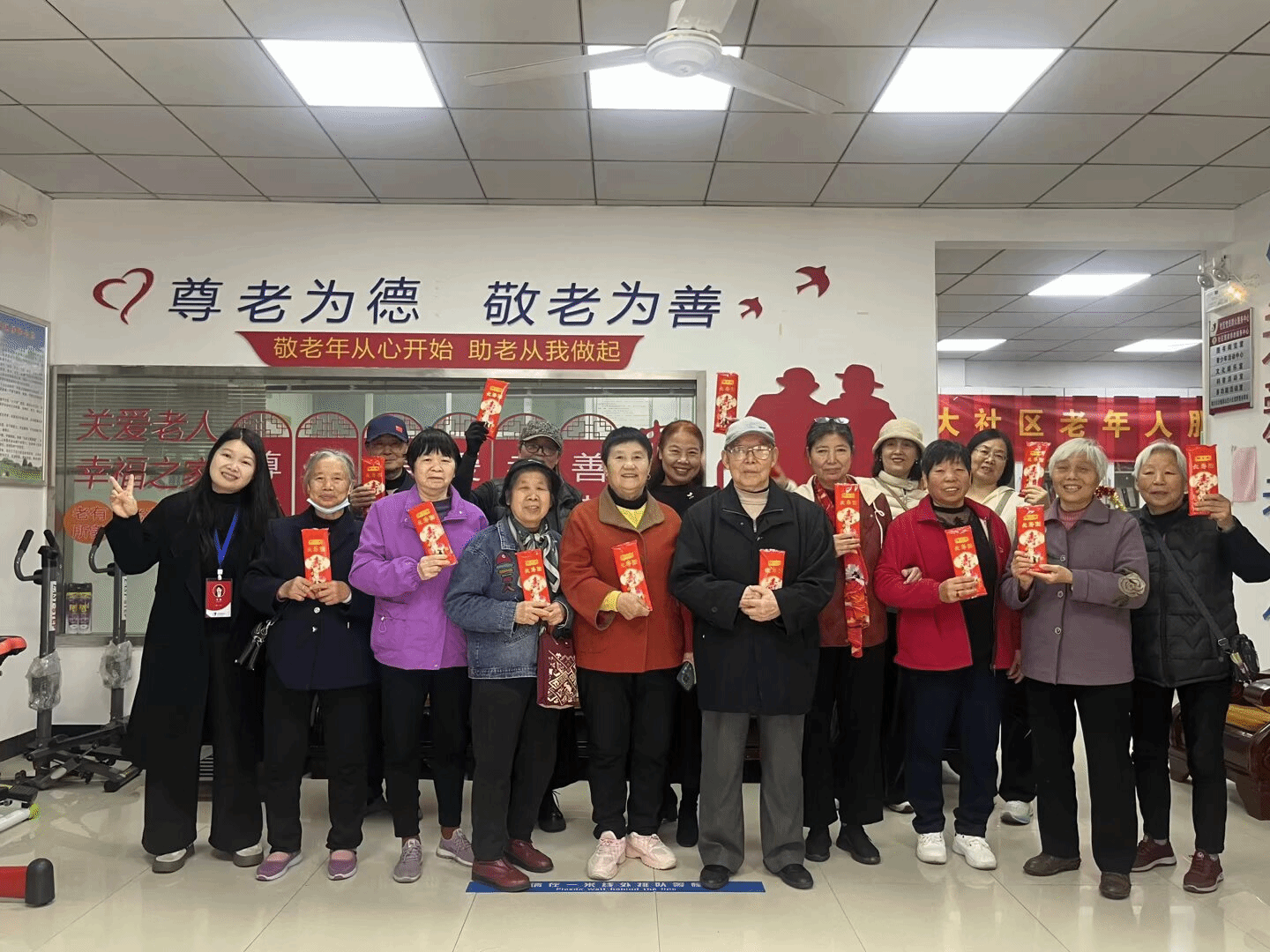 生日祝福环节将整场活动推向顶点。伴随着温馨的生日歌旋律,全场共同唱响祝福,寿星们携手许愿、吹灭蜡烛,社区工作人员与志愿者为老人们分切香甜的生日蛋糕。此外,社区还贴心为每位寿星准备了长寿面伴手礼,寄托着健康长寿、平安顺遂的美好祝愿,让老人们真切感受到社区大家庭的温暖与关怀。
