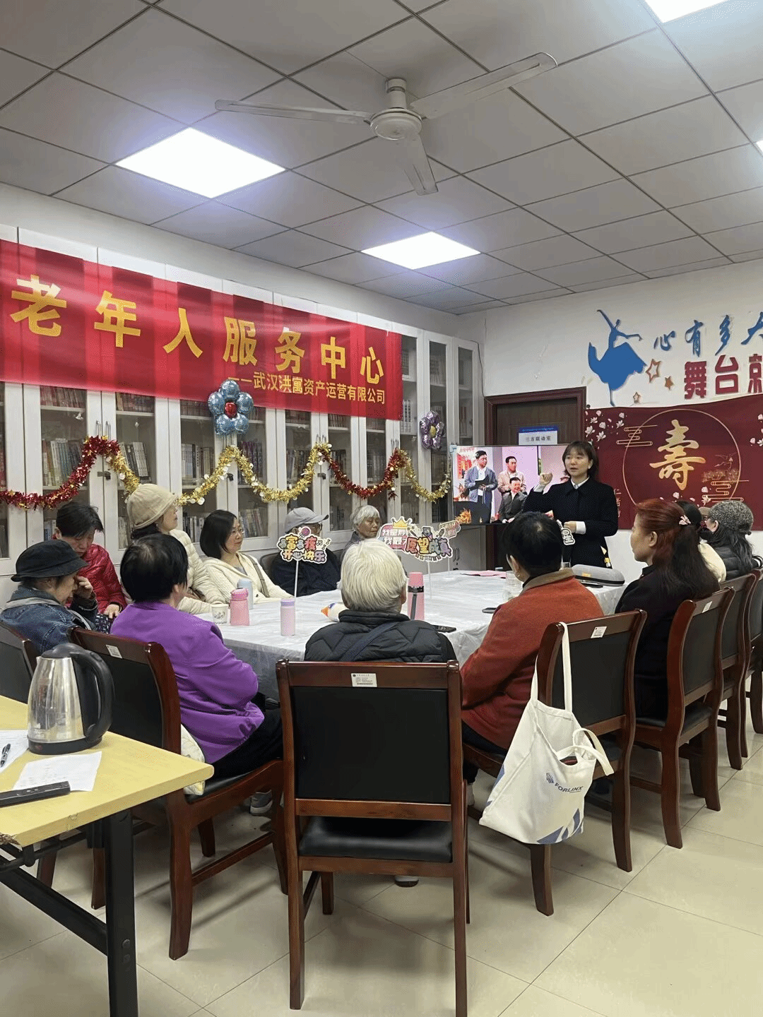 为传承弘扬敬老爱老助老传统美德,切实守护老年群体财产安全,丰富辖区退休教职工精神文化生活,3月27日,地大社区联合地大老年人服务中心,精心开展“情暖桑榆·乐享生辰”长者集体生日会活动。活动携手辖区内经营单位,将反诈宣传、文艺互动、手工体验与生日仪式有机融合,为辖区60岁以上老年朋友打造了一场温馨、实用且意义十足的暖心活动。