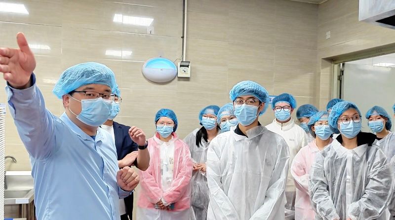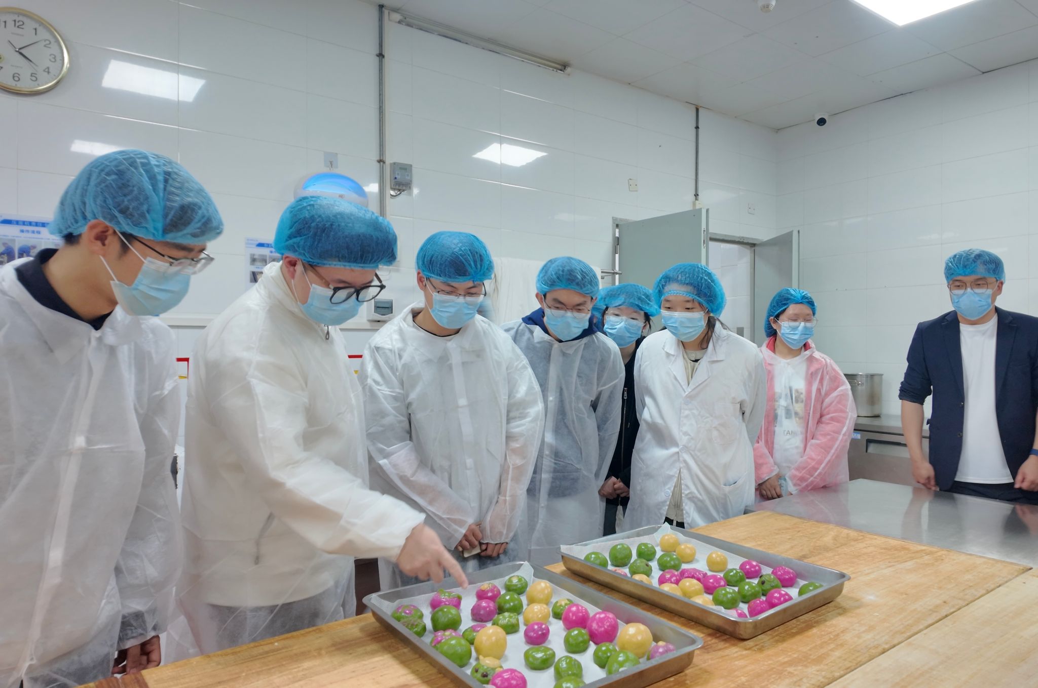 青团蒸制的间隙,食堂负责人带领同学们走进后厨,近距离参观食堂操作间。干净整洁的环境、清晰划分的功能区域、规范有序的厨具摆放、透明可视的加工流程,让同学们连连赞叹。有人感慨“后厨比自家厨房还要干净明亮”,更有同学笑称“我以后要到食堂工作”,幽默的话语引来阵阵欢笑,也让大家对食堂工作人员的日常劳动多了一份理解与敬意。