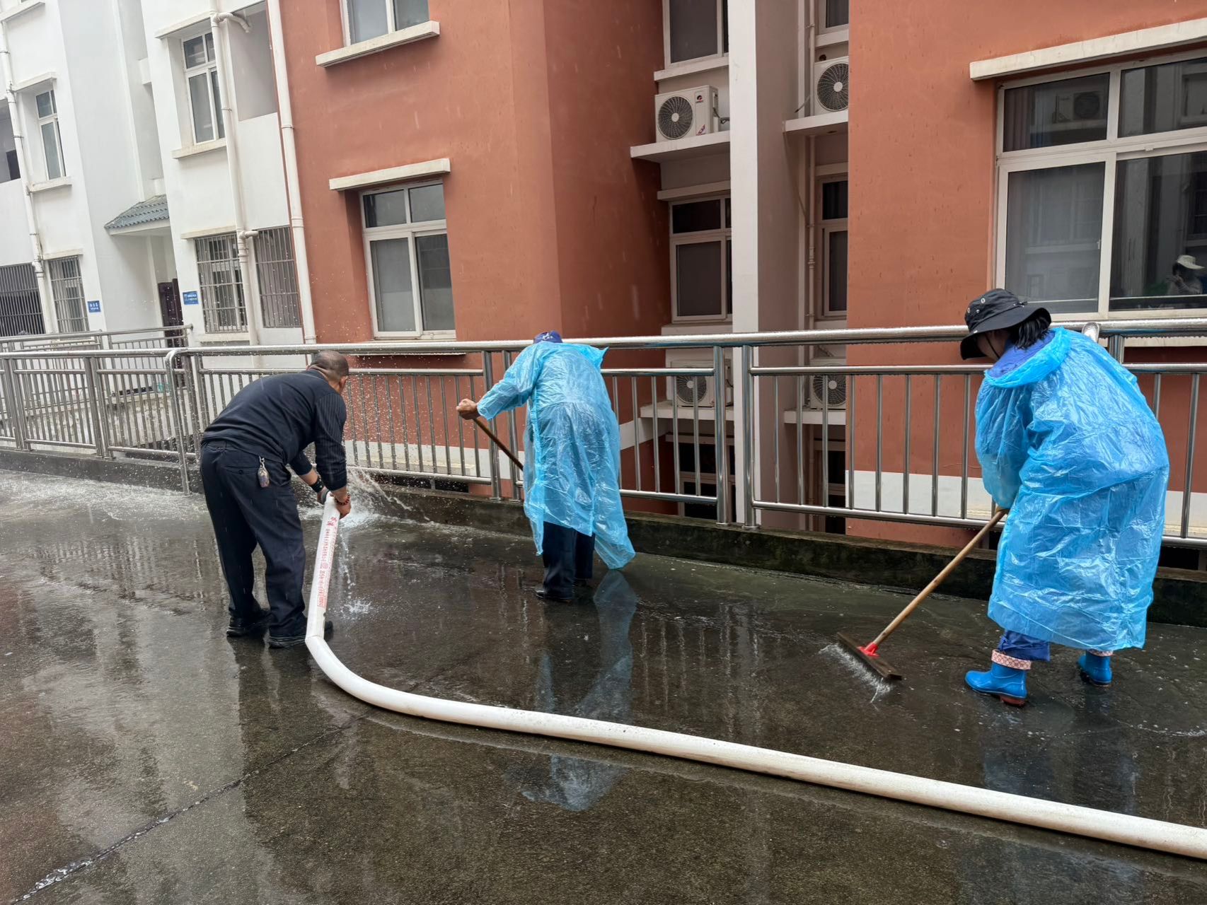 巴东基地以“严标准、快节奏、实举措”推进会议与研学双重保障。工作人员提前到岗、连续奋战,细致清扫公寓楼、规范摆放备品、全面消杀通风,用心铺好每一张床单、整理好每一套被褥。针对阴雨天气带来的地面湿滑、青苔滋生等安全隐患,大家冒雨清刷公共区域、清除污渍青苔,增设防滑提示,筑牢校园安全防线。食堂筹备同步提速,伍晋与工作人员一同现场细化餐食流程、核对食材储备、优化供餐方案,以扎实伟德betvlctor国际官网,守护师生舌尖上的安全与满意。