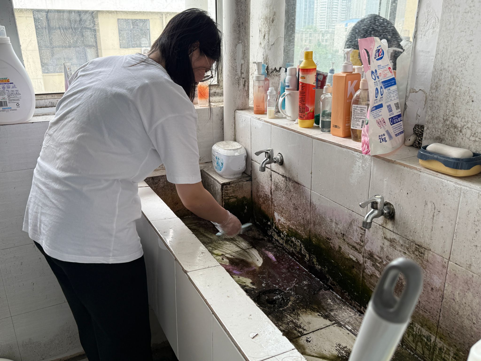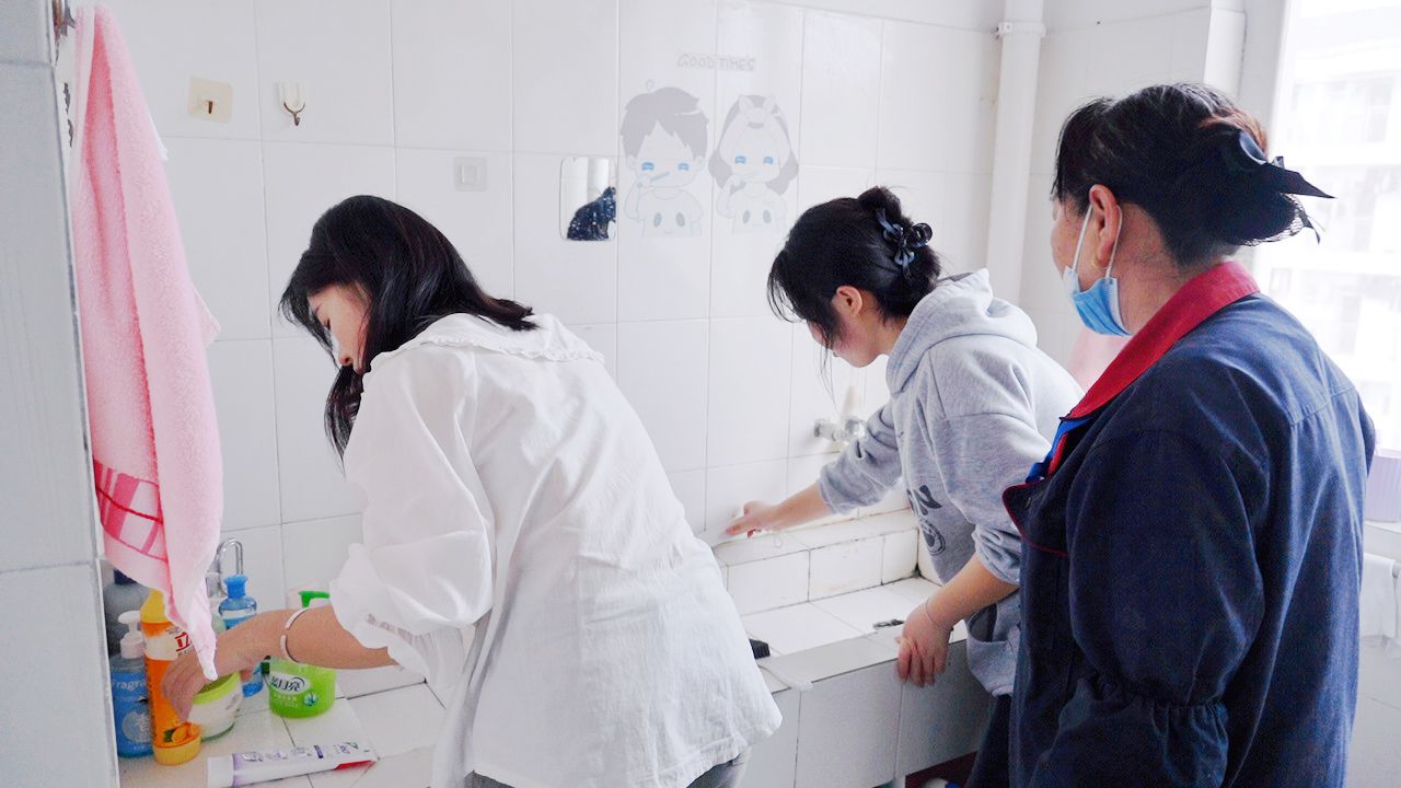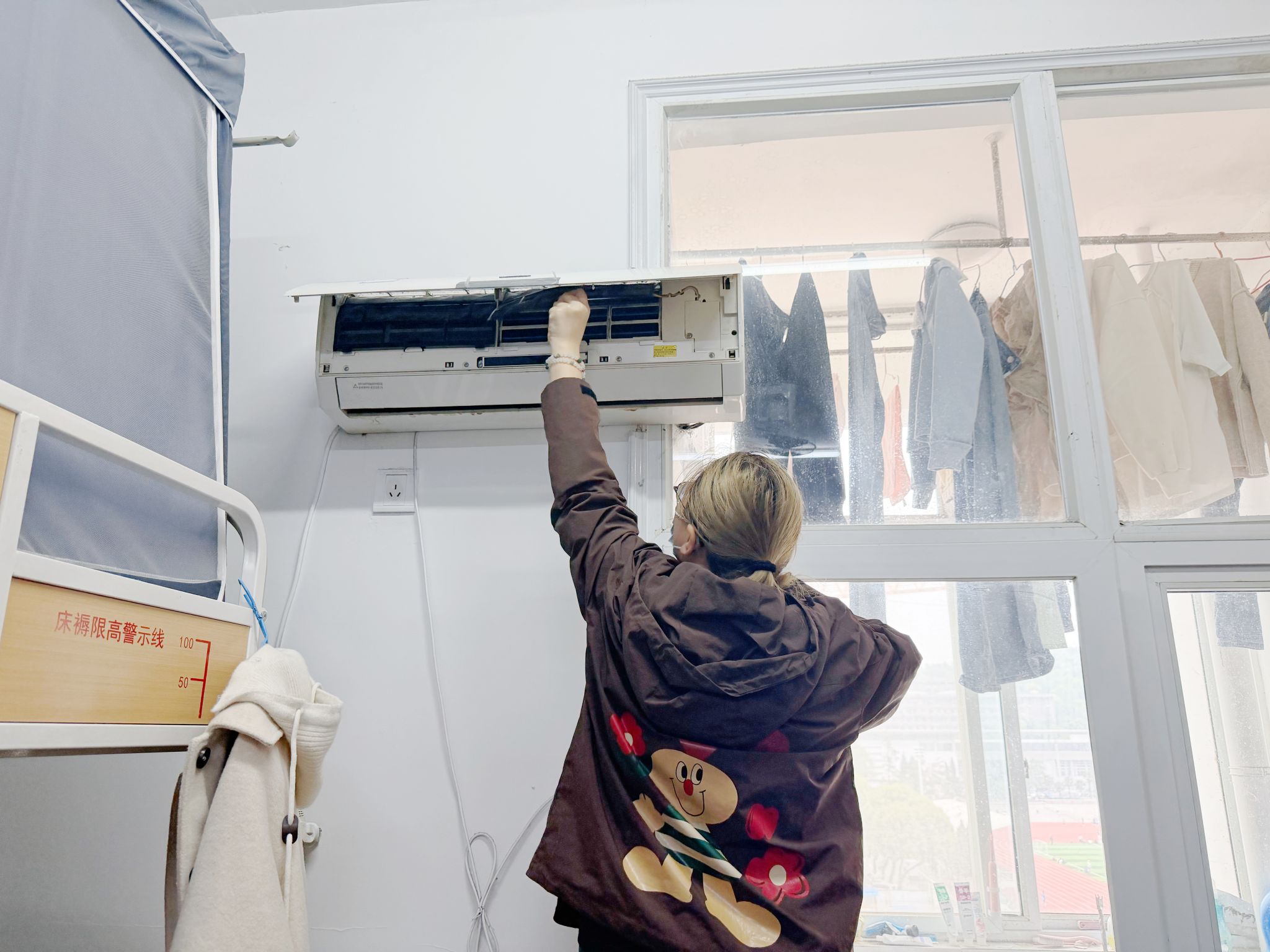 操环节更是热火朝天。同学们回到各自寝室,保洁员一对一“手把手”指导,及时纠正不规范动作,耐心答疑解惑;园区长穿梭在各宿舍间维持秩序,保障活动有序推进。大家分工协作、互相配合,有的擦玻璃,有的刷厕所,有的拆洗空调滤网……短短一个半小时,原本藏污纳垢的卫生死角、积灰已久的空调,在同学们的巧手下一一变身,宿舍面貌焕然一新。活动最后,工作人员对所有参与宿舍的清洁成果逐一检查验收。不少同学表示,课程内容“接地气”、技能学得“用得上”,终于不再面对内务清洁一头雾水