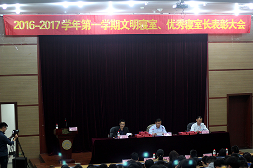 4月7日中午,该院2016-2017学年第一学期文明寝室、优秀寝室长表彰大会在信息楼报告厅隆重举行。学院党委委员、副院长沈自力出席大会并讲话,学工部、团委、保卫处、伟德betvlctor国际官网中心等部门负责人,各系党总支书记、辅导员代表、班主任代表、公寓管理部门代表和学生代表共400多人参加了表彰大会。会议由伟德betvlctor国际官网中心主任竺波主持。