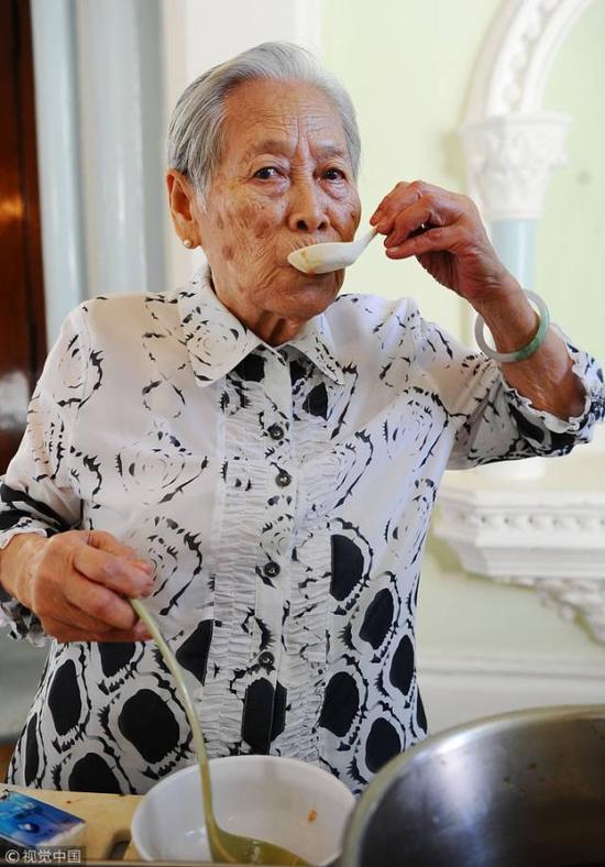 ▲2010年10月12日,香港大学,83岁的“三嫂”袁苏妹回到港大,为大学堂(港大的学生宿舍楼之一)的新生调制