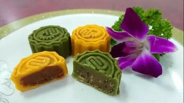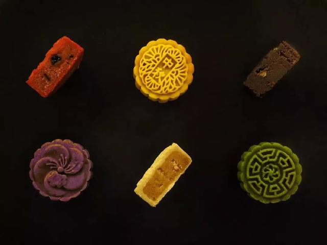 绿色月饼是甜而不腻的乌豆沙月饼,带着红豆的甜蜜,含着绿豆的清香,在你的舌尖融化。黄色月饼是甜蜜的芒果月饼,颜色明艳诱人,味道丝丝香甜,爱芒果的朋友不要错过了。红色月饼是香味独特的榴莲芒果月饼。黑色月饼是咖啡牛肉月饼,咖啡味的外皮,中和了肉的厚重,肉松质感的馅。