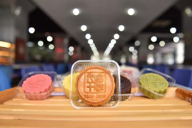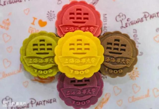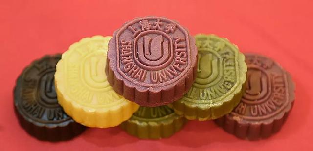 今年,上海海洋大学推出了四种口味的月饼。红、黄、黑、绿,色彩分明的桃山皮,包裹着心意满满的馅,等你来pick。