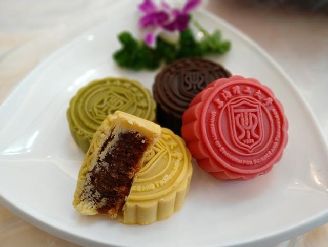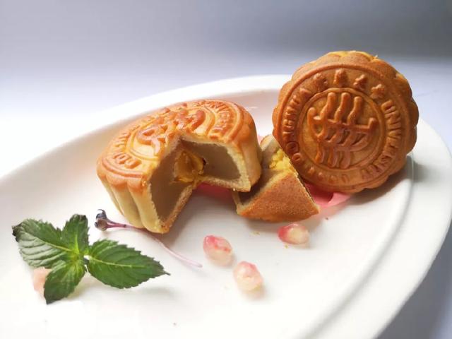 今年,东华大学推出印有“东华”LOGO的中秋定制月饼和造型奇巧的花色月饼。