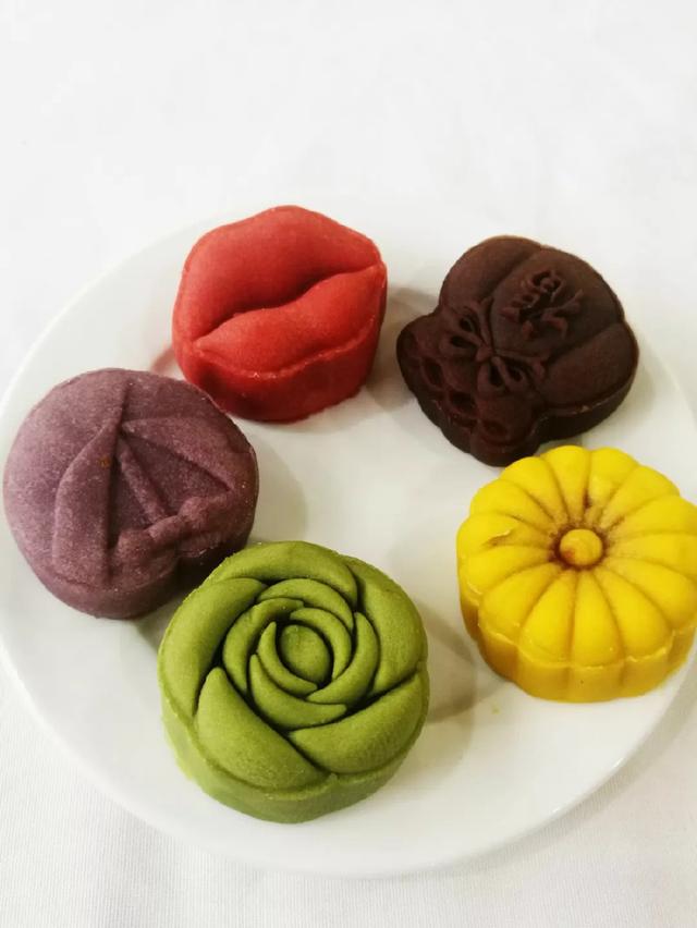 造型奇巧的花色月饼: