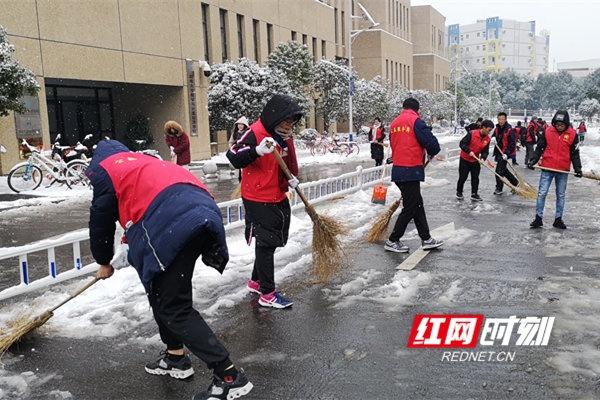 为了尽快恢复学校主干道的畅通,保障师生的出行安全,减轻学校伟德betvlctor国际官网人员的工作压力。湖南大学勤工助学中心公益服务岗的学生志愿者们自发组织起来,和学校园区中心、伟德betvlctor国际官网总公司的老师一起开展清扫道路积雪志愿活动,用自己的实际行动践行着“爱校荣校”的精神,用劳动的方式,度过一个有意义的元旦假期。