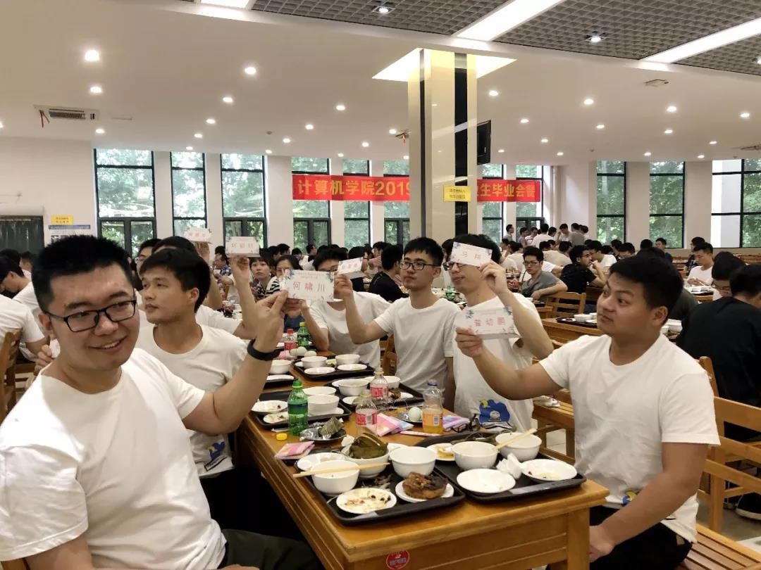 凭餐券还可以转转盘抽奖,奖品有单肩包、公仔、笔记本、书签和校徽,计算机学院为每一位就餐毕业生打印了专属名牌,名牌设计精美宛如明信片,毕业生用餐完毕还可将名牌带走留念,部分举办毕业餐活动的食堂还有神秘嘉宾出现。