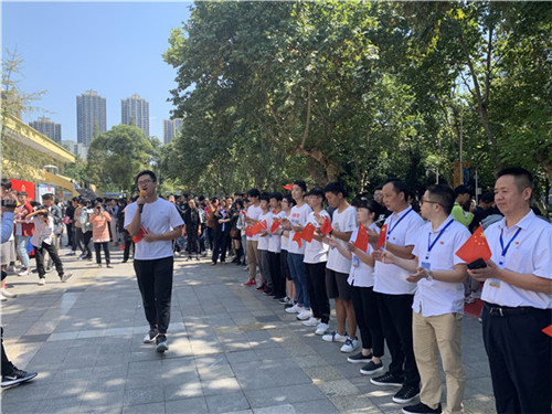 悠扬的小提琴声和音乐声拉开了序幕。后勤员工、学生代表分别在两校区带来了一场《我和我的祖国》《我爱你中国》快闪,将后勤人对祖国深深的爱意缓缓诉说,发自肺腑的动人歌声,在校园上空久久回荡,撩动着所有人的心弦,激荡着所有人的情怀。