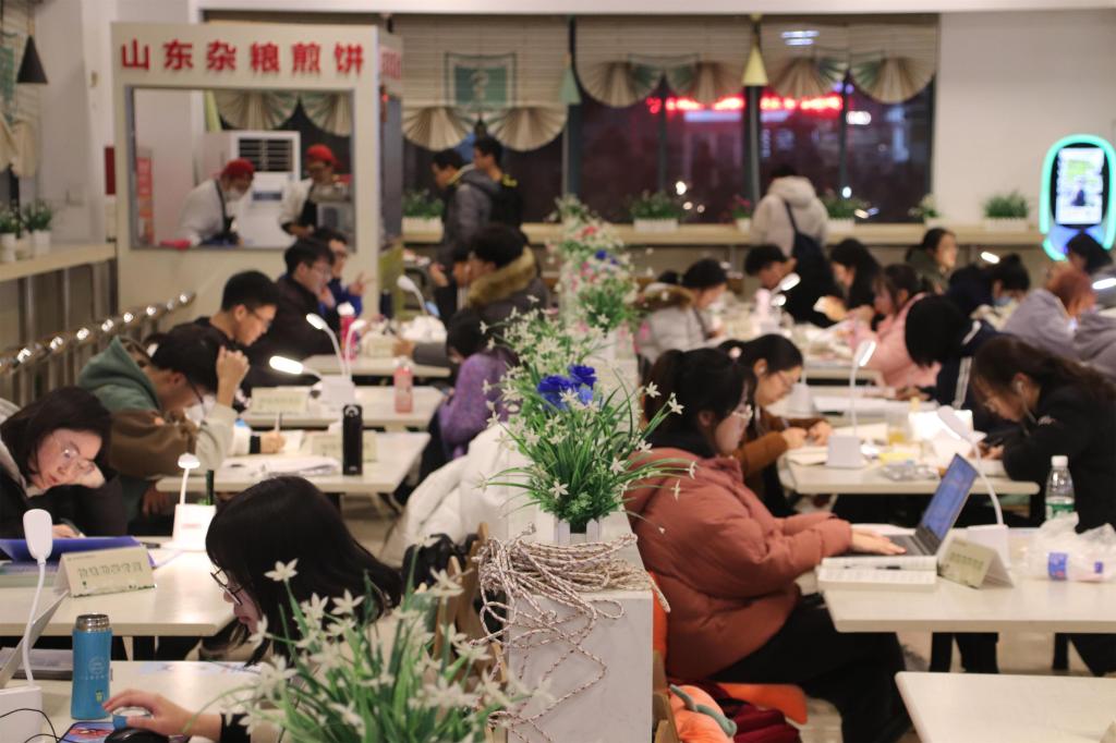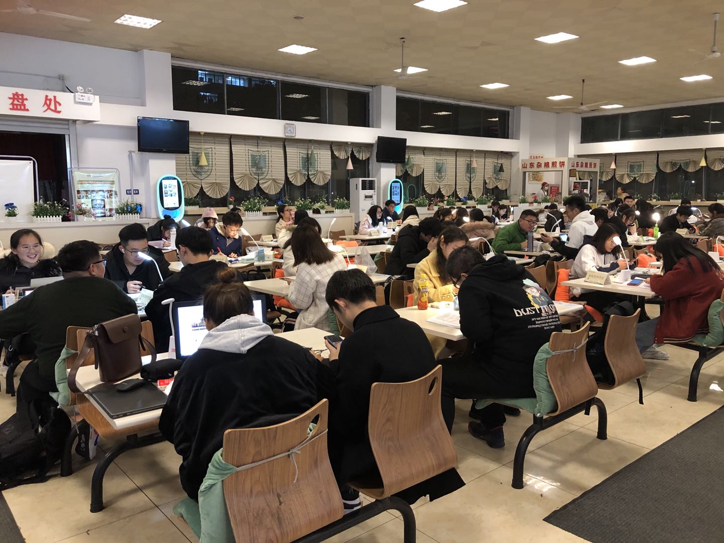 期末考试临近,同学们也进入紧张的复习迎考阶段,为深入贯彻落实“不忘初心、牢记使命”主题教育,伟德betvlctor国际官网总公司江宁一餐厅在了解同学们自习座位紧张的情况后,经过一番精心策划及准备,在复习迎考阶段每天晚上19点至22点,开放大厅为学生提供复习场所。