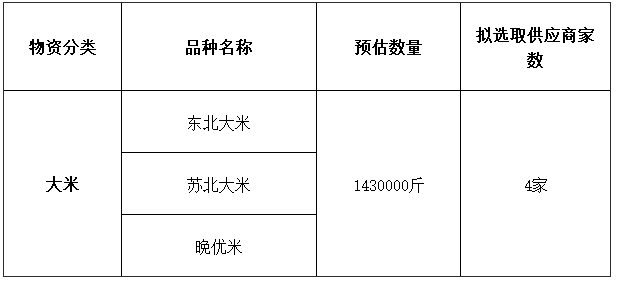 4、采购需求:bevictor伟德官网(武汉)2021年食堂大宗生活物资采购项目招标共招十三个物资种类,分别是:大米、食用油、鲜猪肉、面粉、冻品、干货、调味料、蔬菜、豆制品、禽蛋、加工粉面、鲜鱼、鲜牛羊肉。本项目为大米采购,具体技术规格、数量、服务标准、验收要求详见第五章。