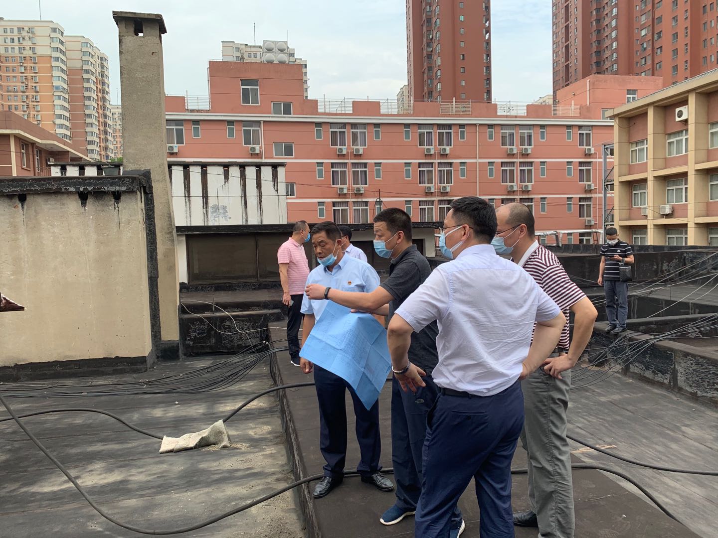 副校长刘杰带领后勤保障处、基建处等部门负责人,冒着高温爬上震旦园楼顶进行实地调研,汗水湿透了衬衫也毫不在意。他认真听取基建处的同志对震旦园复原图纸介绍和建筑结构安全鉴定检测报告,一丝不苟地对改造方案进行论证。