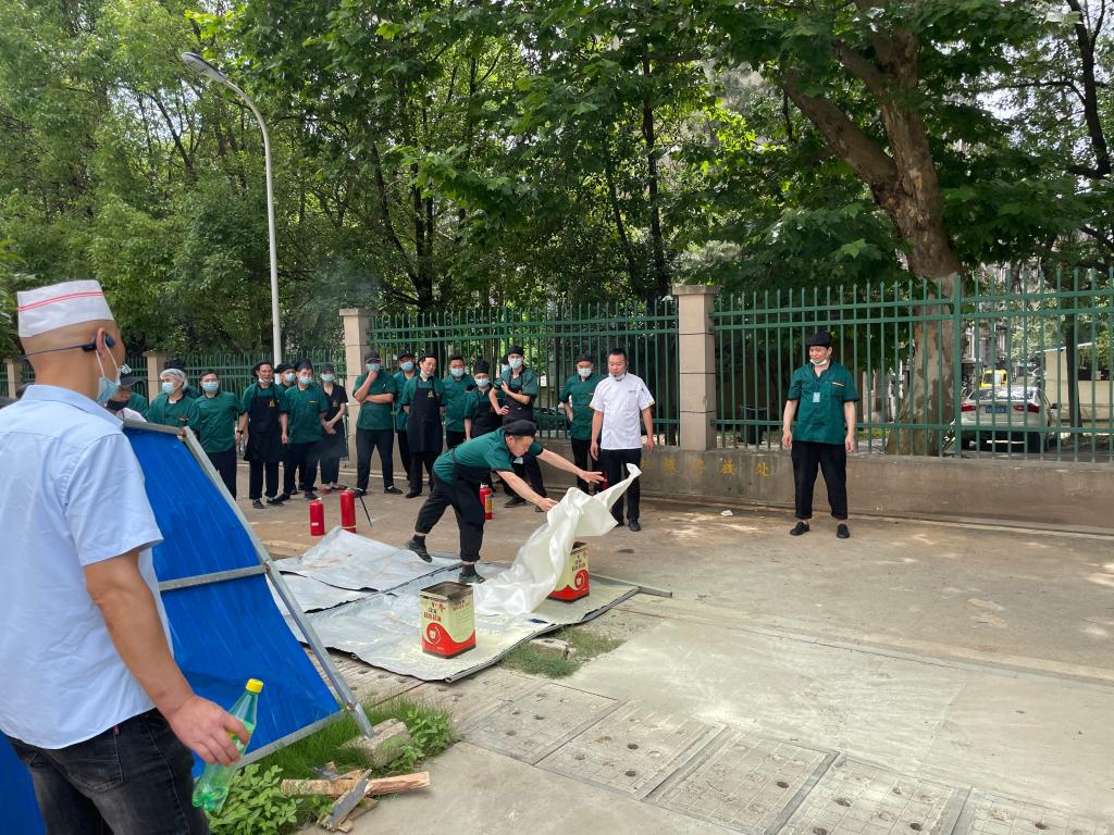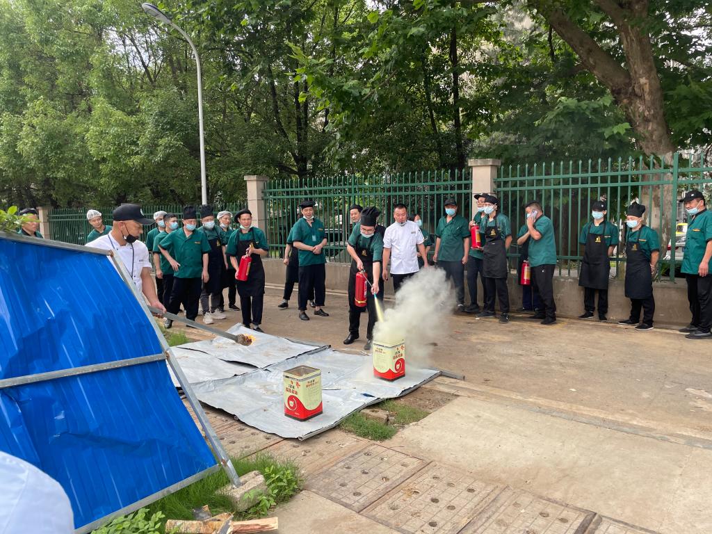为了积极响应后勤保障处“安全生产月”活动要求,保证有序生产,规范灭火操作,6月4日,饮食服务中心于西苑食堂后侧展开食堂后厨消防安全演练。此次消防演练的主要内容是针对后厨起火,起火后后员工应如何在保障自己的人身安全前提下及时控制火情。
