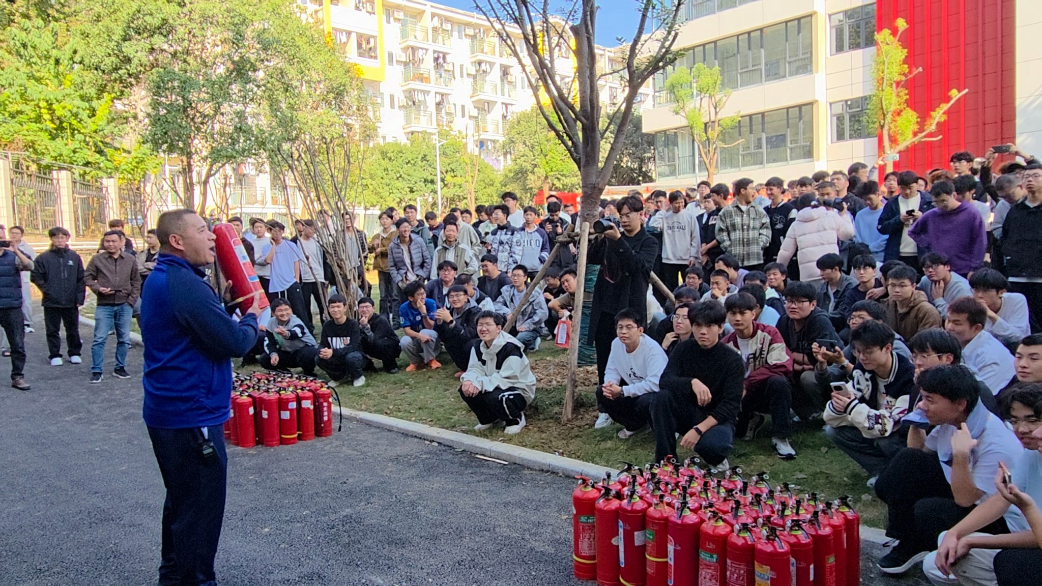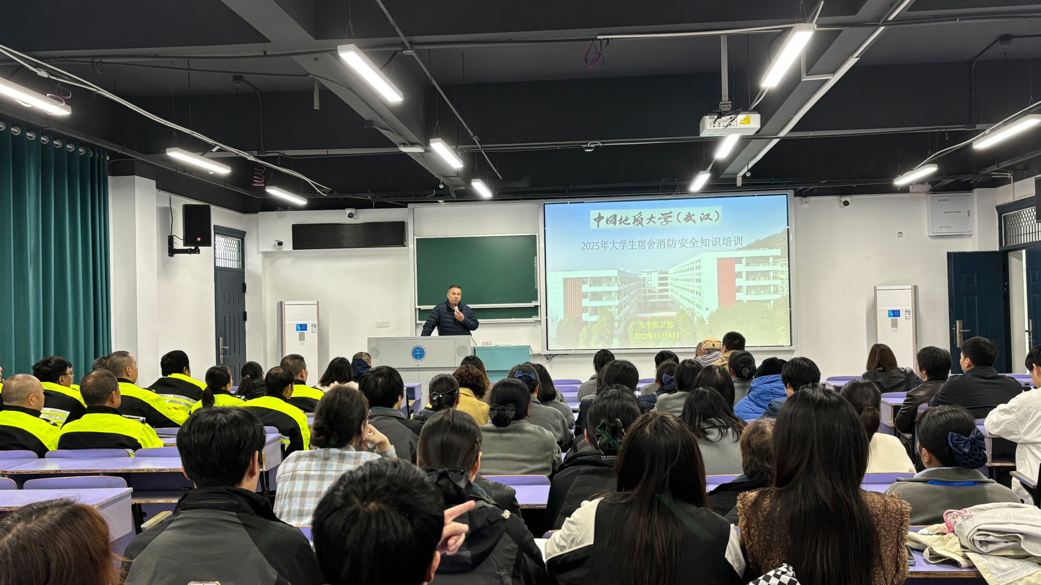 为确保演练高效有序开展,学生住宿服务中心高度重视并提前统筹部署。11月6日下午,中心组织办公室人员、园区长、值班员、前台工作人员及保安员赴教三楼参加安全保卫部消防科开展的消防安全知识与技能专题培训。培训内容聚焦火灾预防、初期扑救、应急疏散等关键环节,帮助参训人员提升安全意识与实战能力。随后,参训人员明确职责分工,强化协调配合,为演练的成功开展奠定了坚实基础。