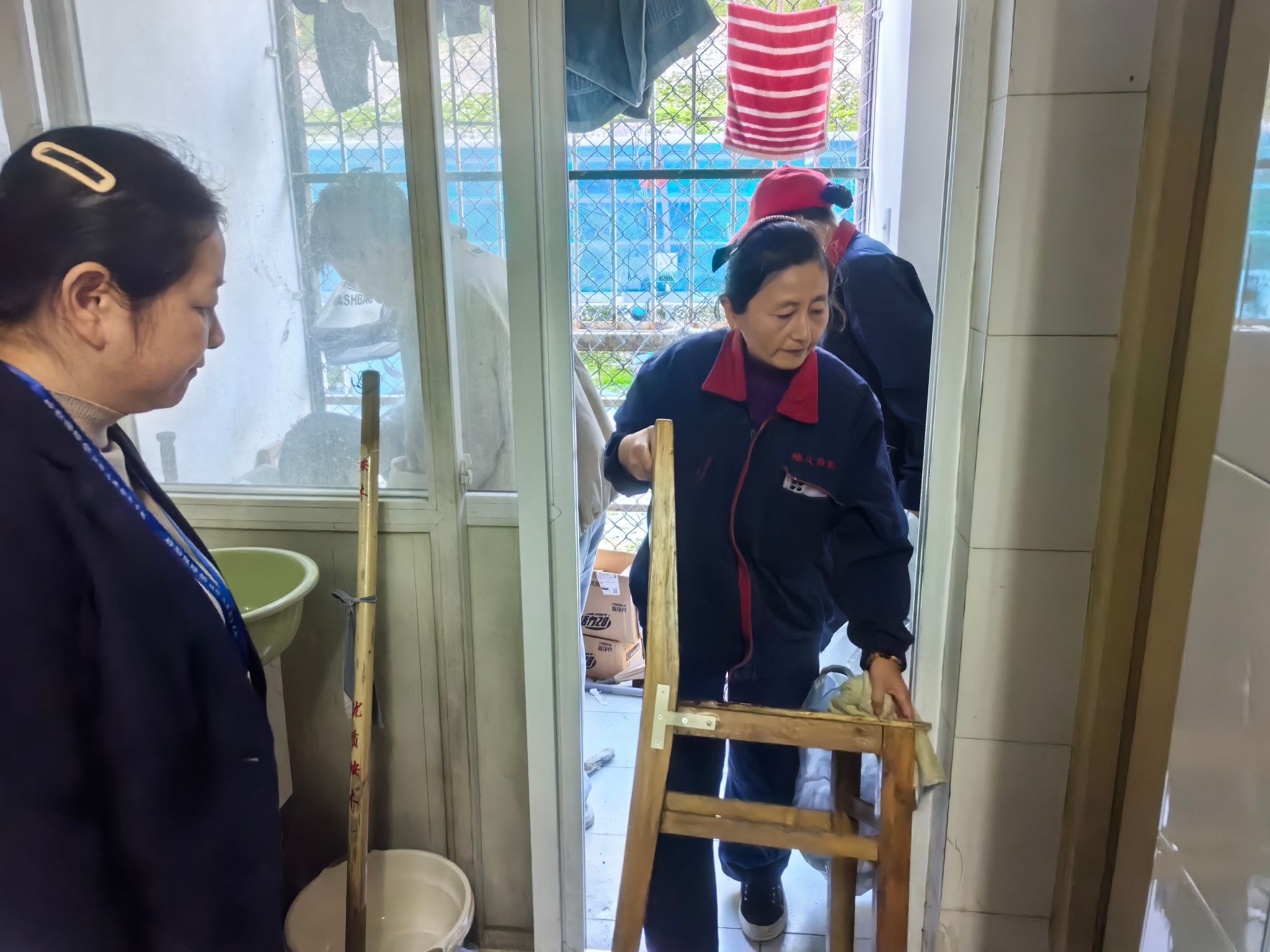 针对部分宿舍阳台杂物堆积的问题,中心启动“宿舍阳台专项清理行动”,以“给晾台减负,为安全加分”为目标改善同学们的居住环境。各楼栋工作人员逐间走访,耐心沟通后协助清理杂物、擦拭栏杆玻璃、清扫灰尘。整治后,阳台整洁明亮,通风采光显著提升,为同学们打造了更安全舒心的居住空间。“后勤人员不仅帮我们解决清理难题,还指导收纳方法,让我们感受到家的温暖。” 同学们的称赞是最佳肯定。